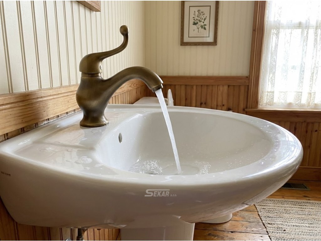 Mosazná vodovodní baterie v povrchové úpravě patinovaná mosaz matná.