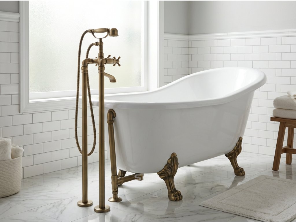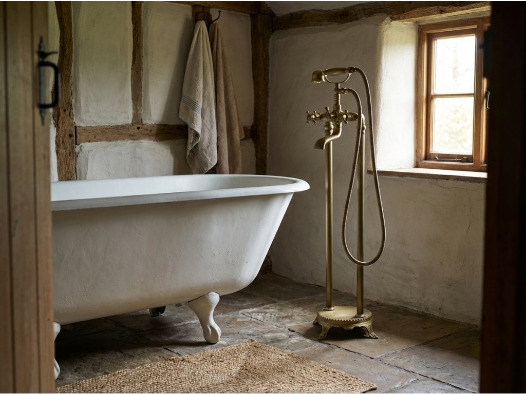 Mosazná vodovodní baterie v povrchové úpravě patinovaná mosaz matná.