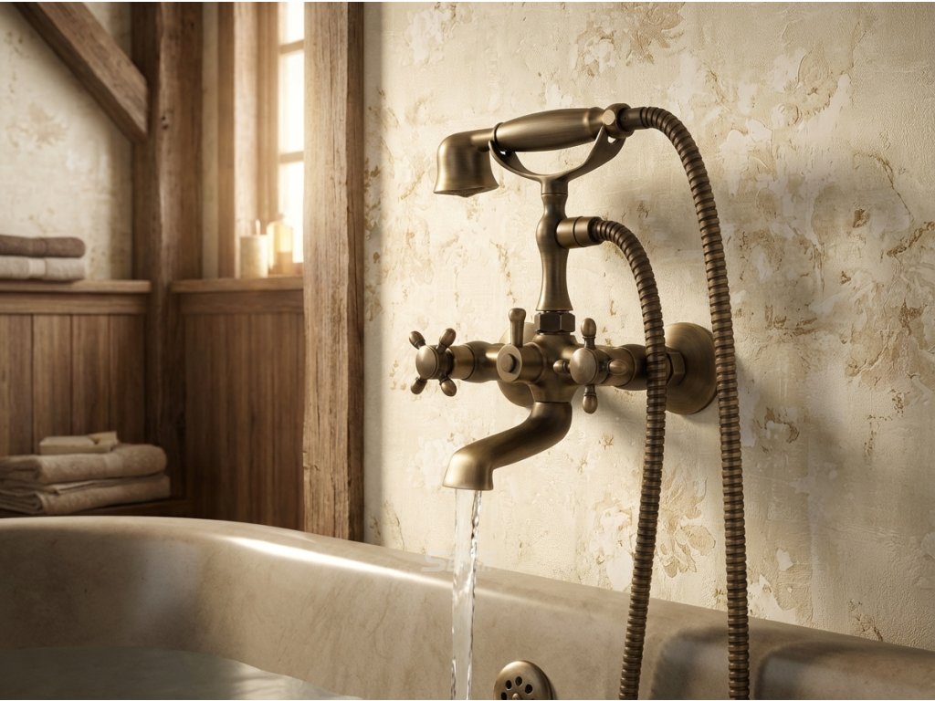 Mosazná vodovodní baterie v povrchové úpravě patinovaná mosaz matná.