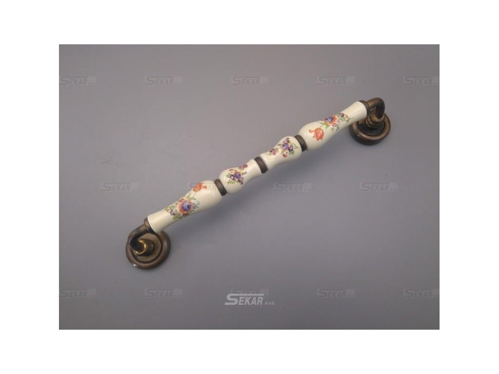 Porcelánové madlo s dekorací.