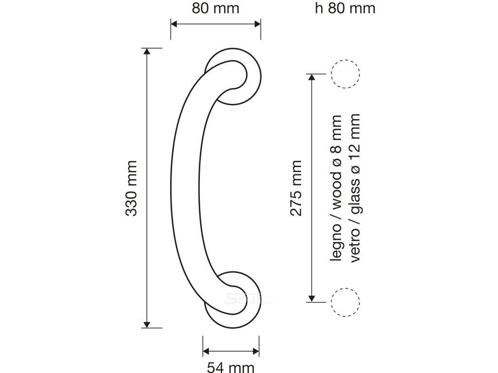 Celomosazné dveřní madlo vyosené s roztečí montážních šroubů 275mm.