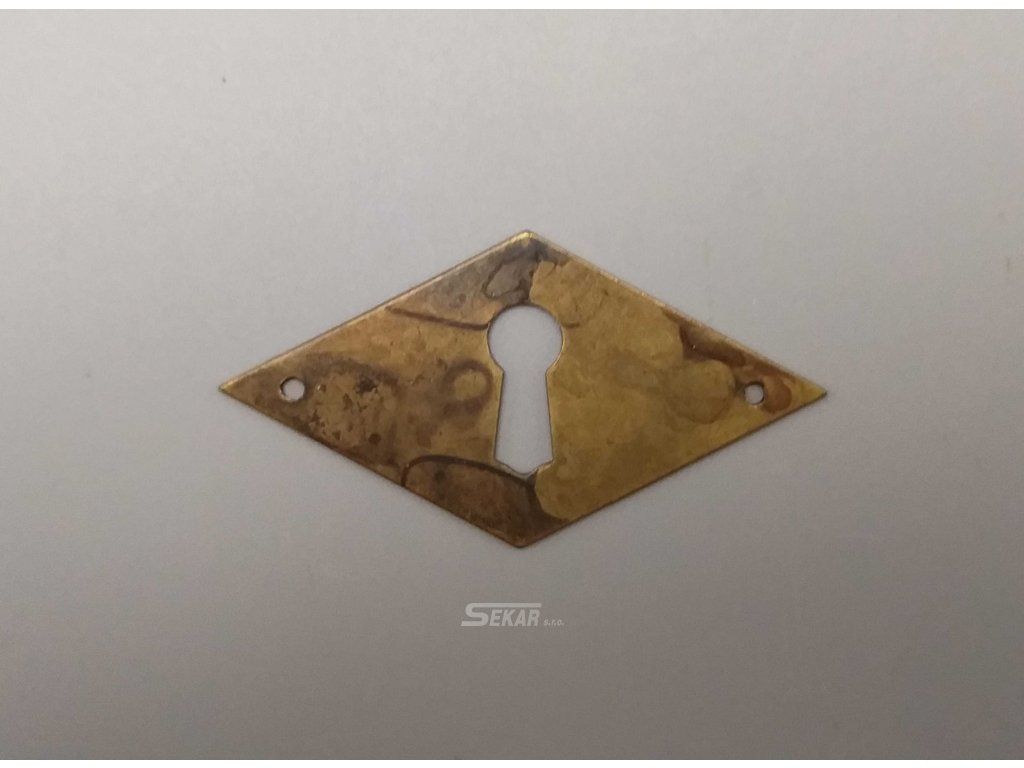 Rozeta nábytková z mosazného plechu s povrchovou úpravou patian antik. Klíčová dírka.