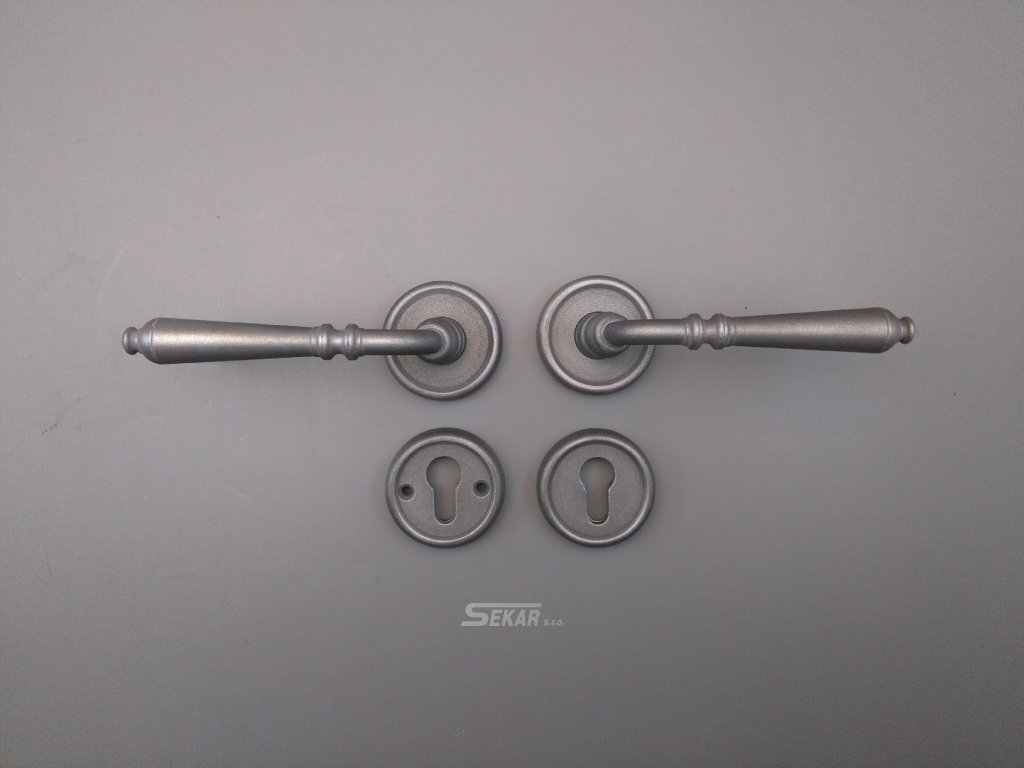 Kliky jsou vyrobeny ze železa a jsou montovány skrz dveře pouze z vnitřní strany dveří. Průměr rozet je 61mm, délka kliky 140mm.Doplňkové parametry
