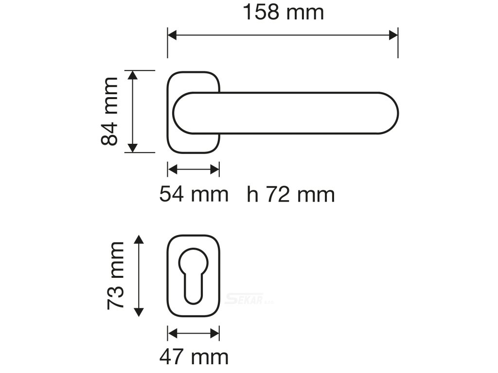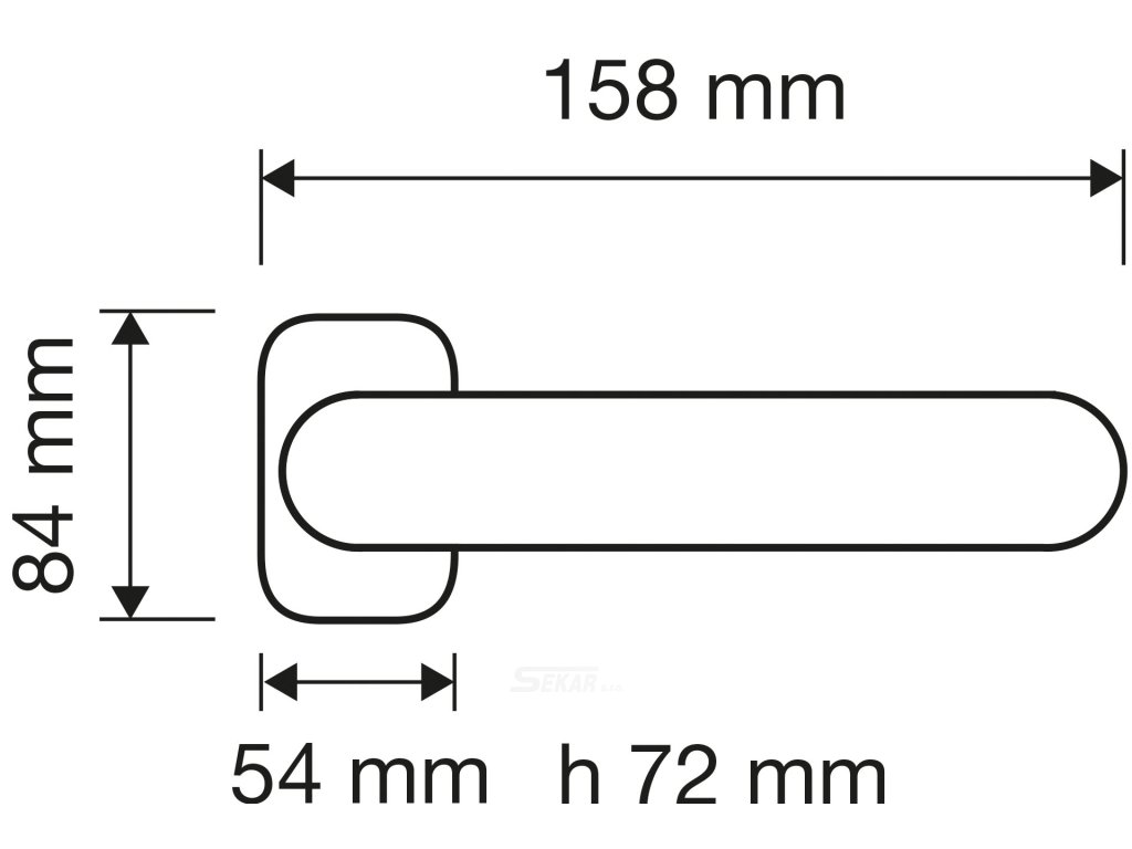Dveřní madlo Arcadia je umístěno na stejný štít jako klika o rozměru 68x382mm.