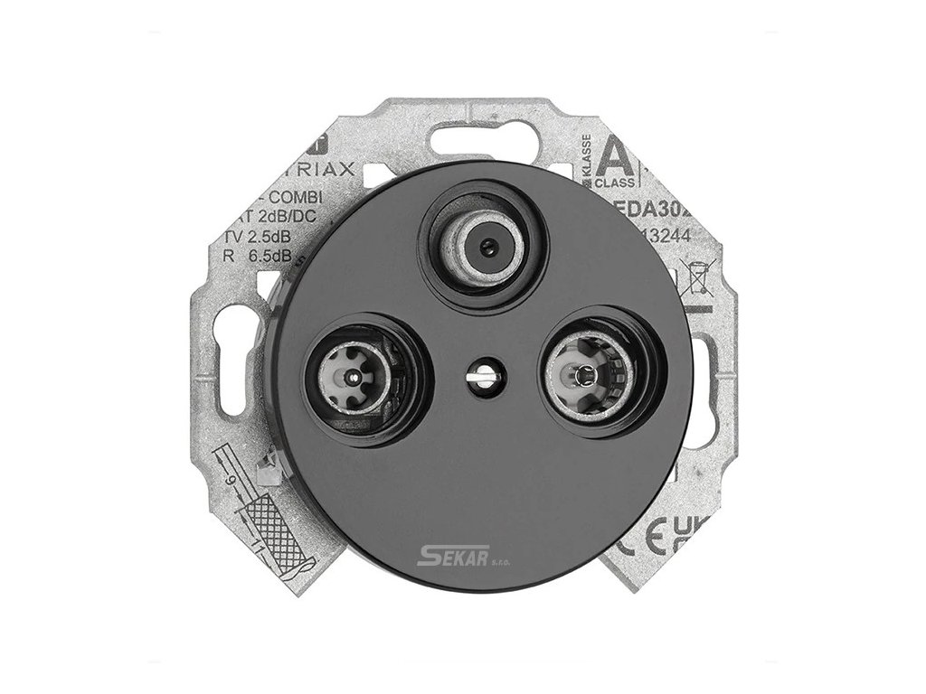 Porcelánová zásuvka pro TV/SAT THPG v černé barvě , BZT - Rádiové a televizní připojení pro systém se zesilovačem podle DIN 45330 s přídavným satelitním výstupem (F-zásuvka).