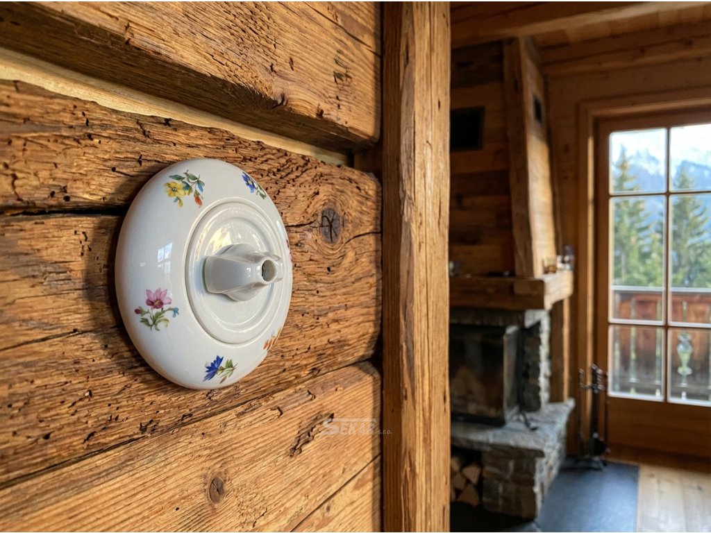 Porcelánový otočný vypínač s rámečkem dekorovaný