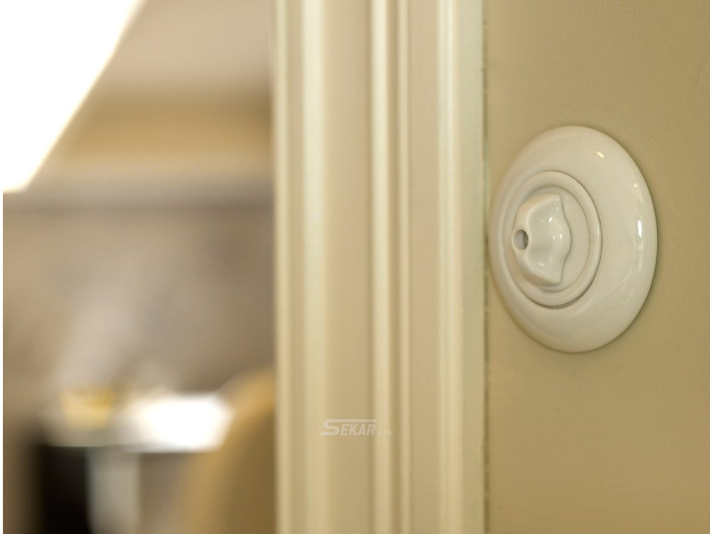 Otočný vypínač v krémově bílé barvě ( RAL 9001) s keramickým otočným mechanismem.