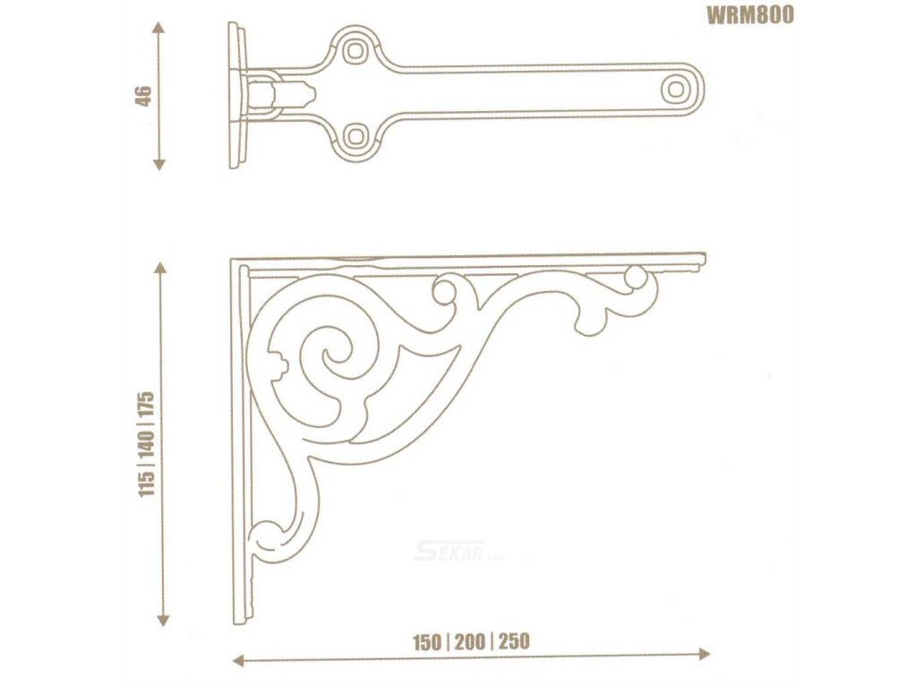 WRM 800.200 D1 konzol pod police 200mm staromosaz
