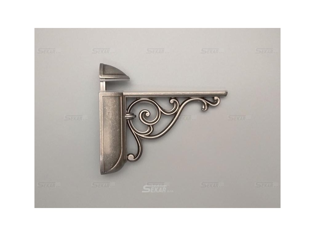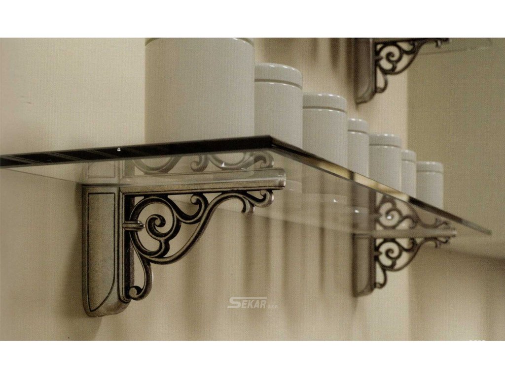 Policová konzole kovová pro dřevěné i skleněné police. Sevření police do síly 40mm. Zatížení je max.15kg na jednu konzoli, doporučená šířka police je do 25cm. Vzdálenost jednotlivých konzolí 40-60cm.