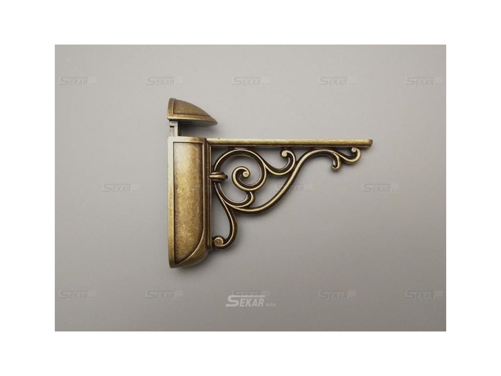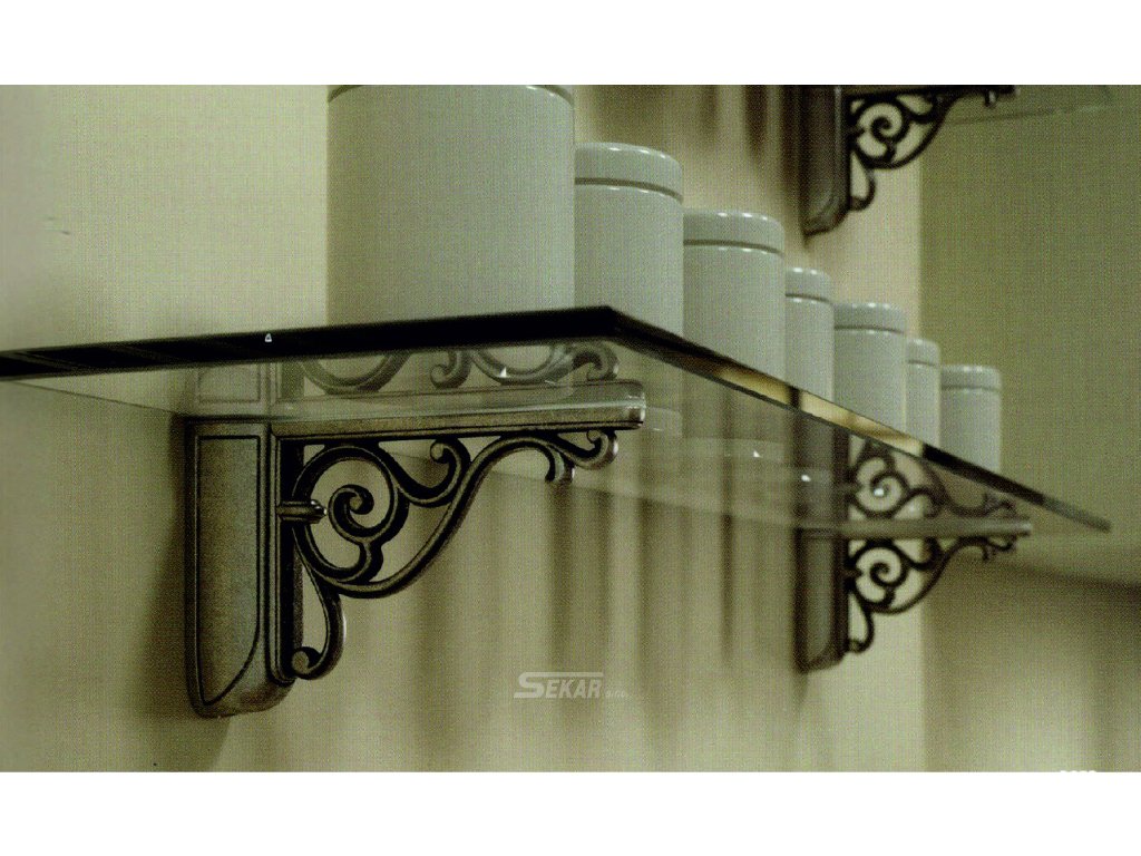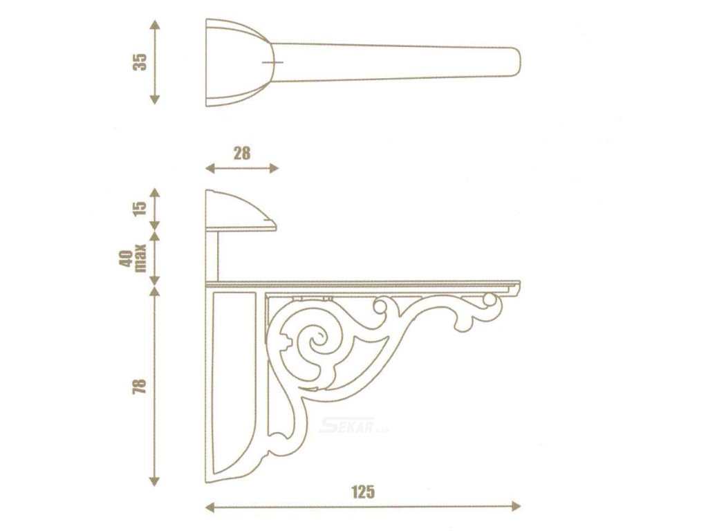 Policová konzole kovová pro dřevěné i skleněné police. Sevření police do síly 40mm. Zatížení je max.15kg na jednu konzoli, doporučená šířka police je do 25cm. Vzdálenost jednotlivých konzolí 40-60cm.