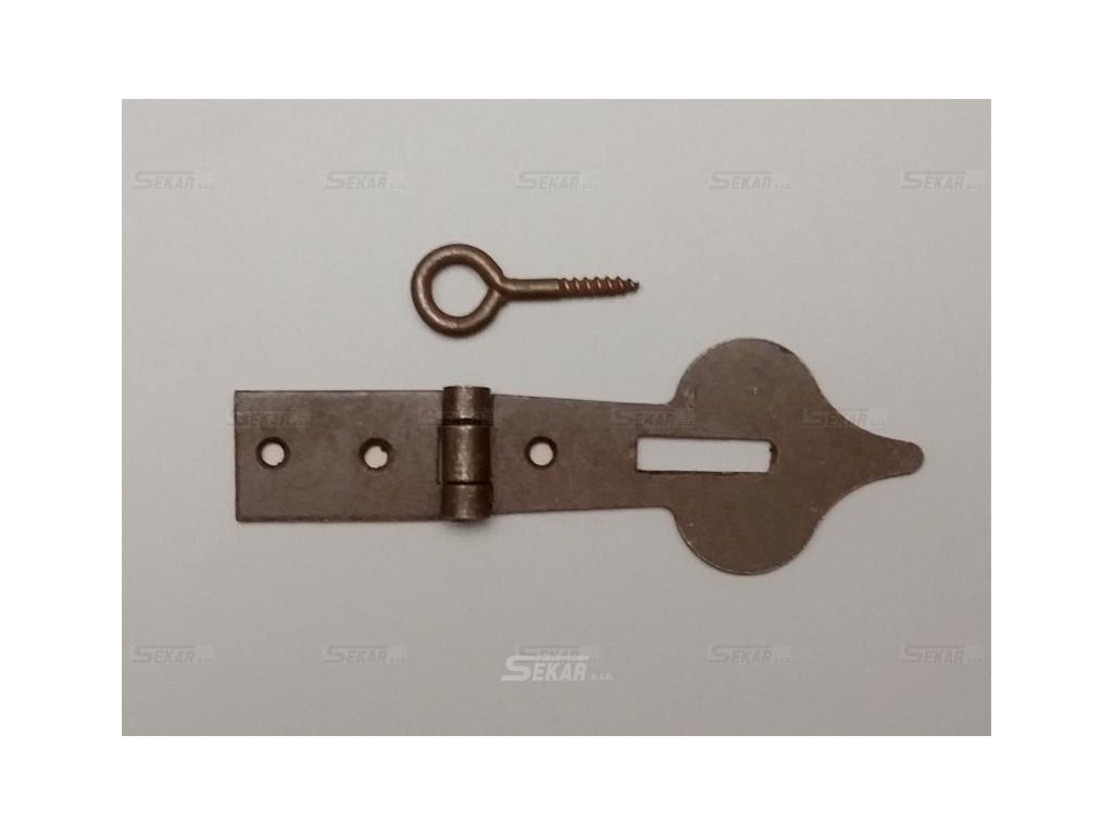 Železná petlice na dveře, petlice na truhlu, petlice s očkem na zámek.