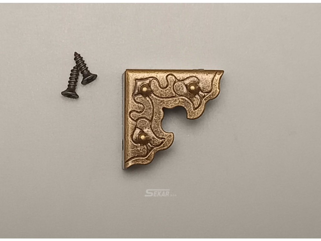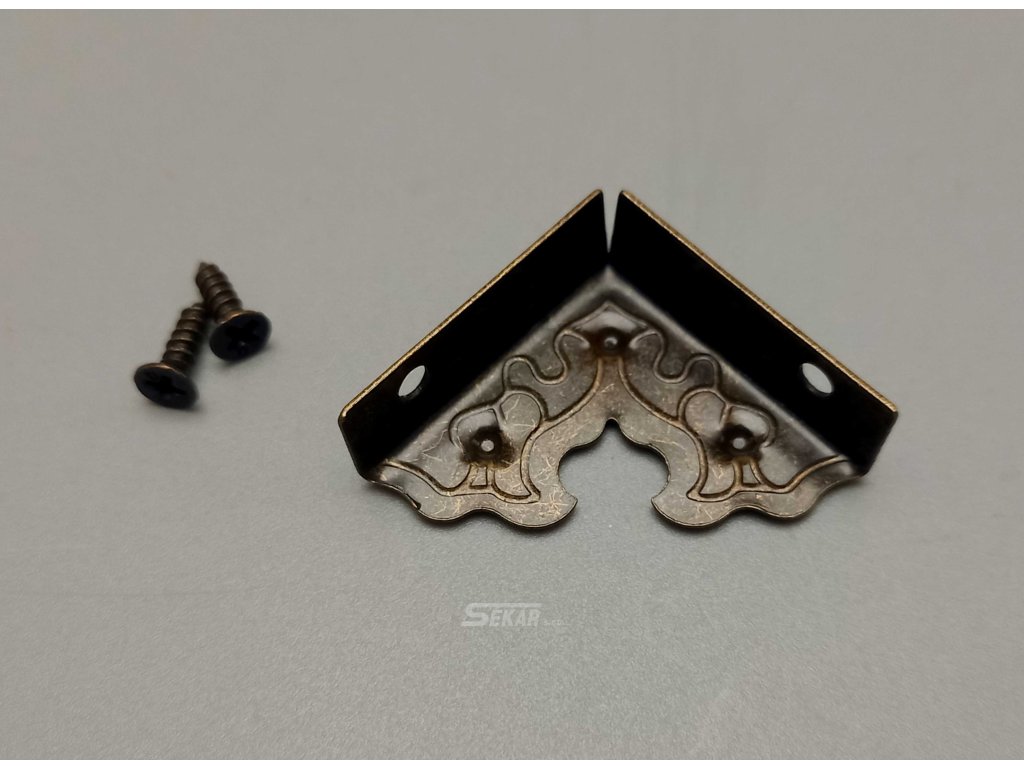 ochraný roh na truhličky, bednový roh v patině, kovový roh k nábytku patinovaný