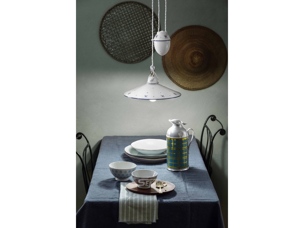 Ručně malované dekory jsou vždy pouze z jedné strany cylindru. Malování na obě strany je možné za příplatek. Svítidlo může být dodáno jak v základní bílé barvě glazury tak i s linkou na okraji, nebo zdobený dekoracemi. Barevnost a zdobení je potřeba zvolit v parametrech výrobku. Po zvolení parametrů bude vypočtena cena.