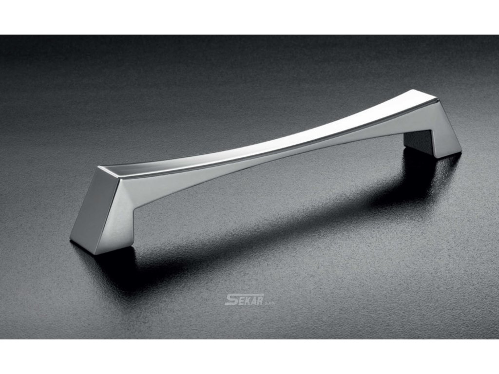 Nábytková úchytka ze slitiny kovů s galvanickou povrchovou úpravou, montáž úchytky je pomosí šrobků M4 ze zadní strany úchytky skrz dvířka nebo čelo zásuvky.