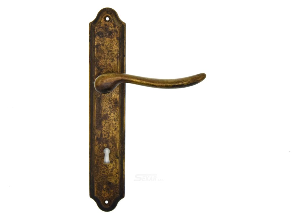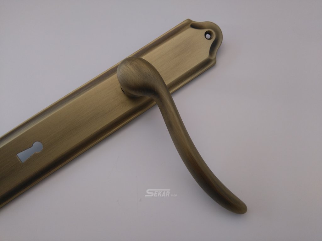 Sada klik na interiérové dveře se štítem. Variantu zámku a rozteč si zvolte níže v parametrech, stejně tak parametr povrchové úpravy. Rozteč je osová vzdálenost kliky a kruhové části zámku. Paramerty je vždy nutné zvolit, jinak nelze kliku vložit do košíku a objednat. Klika je vždy opatřena vratnou pružinou pro lepší funkčnost. Součástí kliky jsou vždy čtyřhrany a spojový materiál.