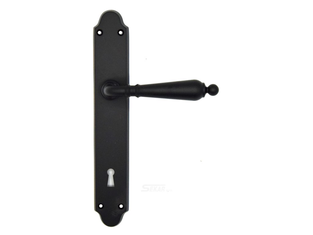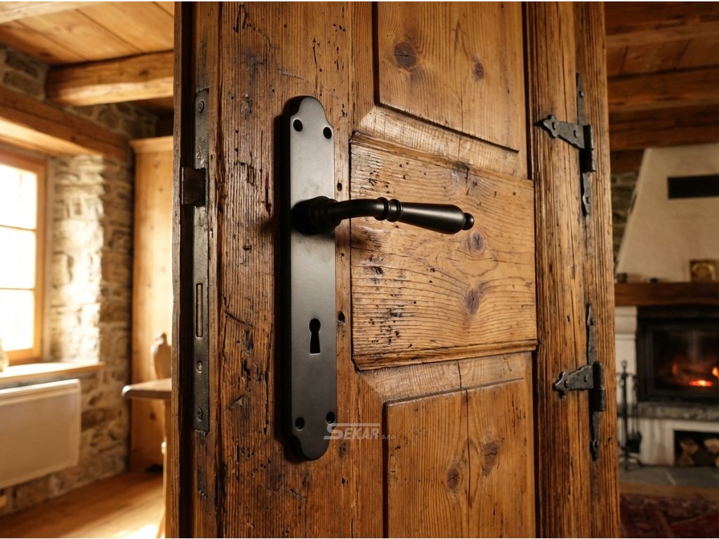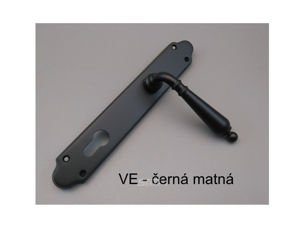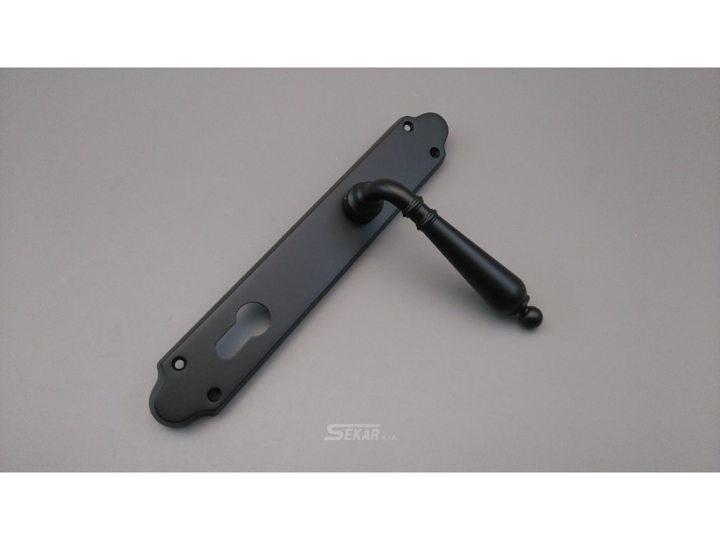 Mosazná stylová klika černá na šroubovacích rozetách se skrytými upevňovacími šroubky 011.