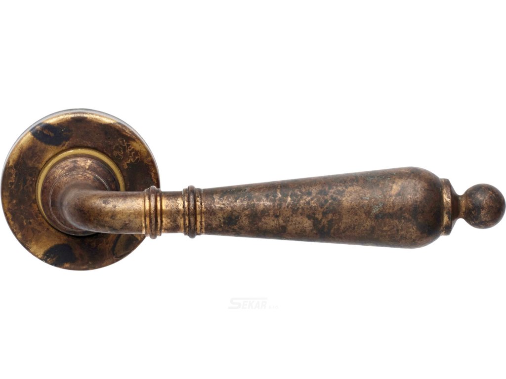 Celomosazné dveřní madlo Florenzia v povrchových úpravách mosazi. Rozety 011.