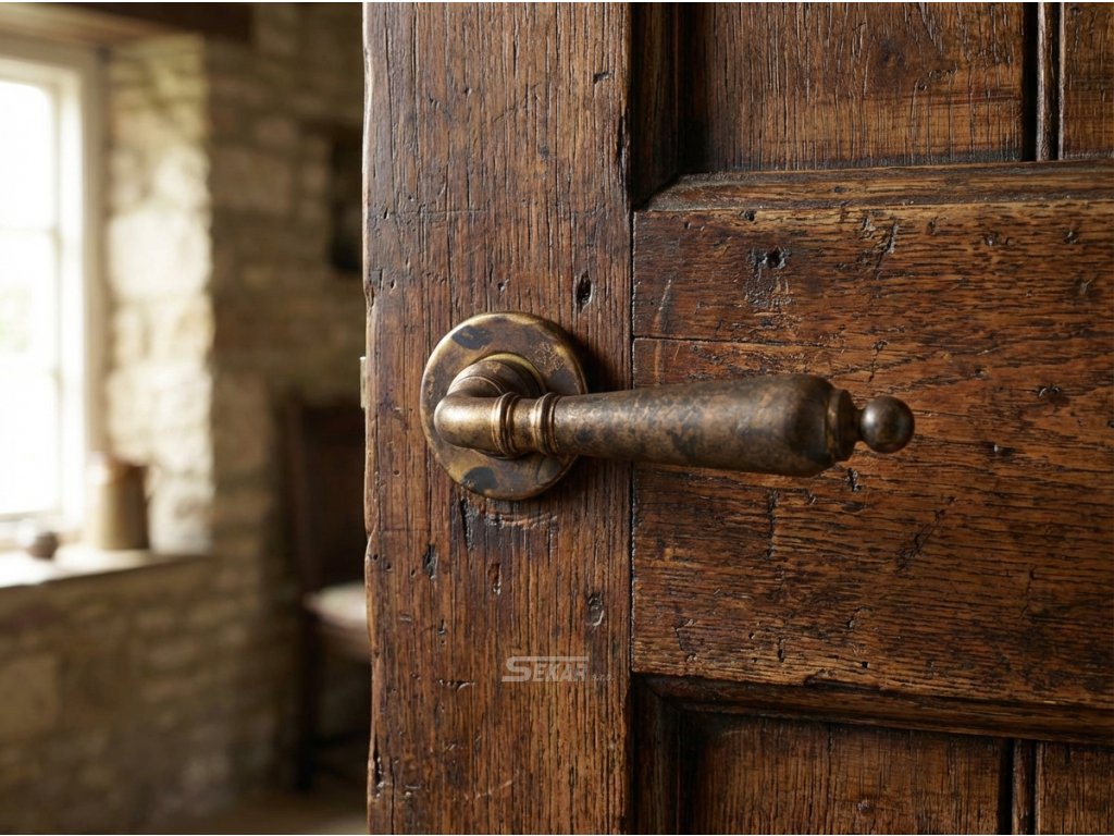 Mosazná stylová klika různé povrchové úpravy na šroubovacích rozetách se skrytými upevňovacími šroubky 011.