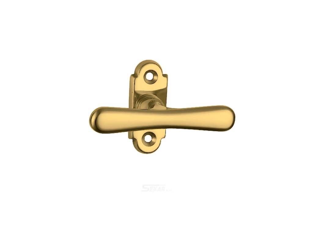 Mosazná dveřní klika v provedení ALT-WIEN se štítkem.