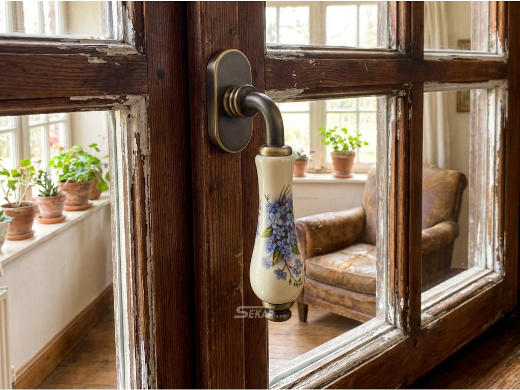 Mosazné dveřní kování s dekorovaným porcelánem. Kliky se dodávají pro různé varianty zámků a s...