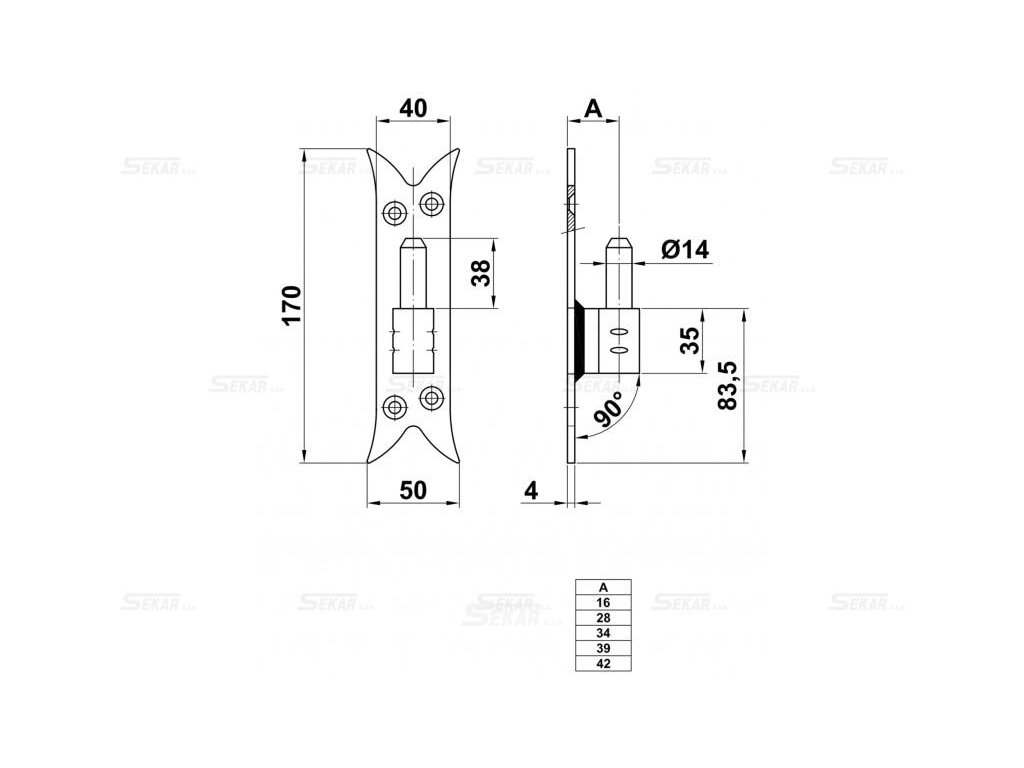 | Rozměr: | 170x40x4/28mm |
