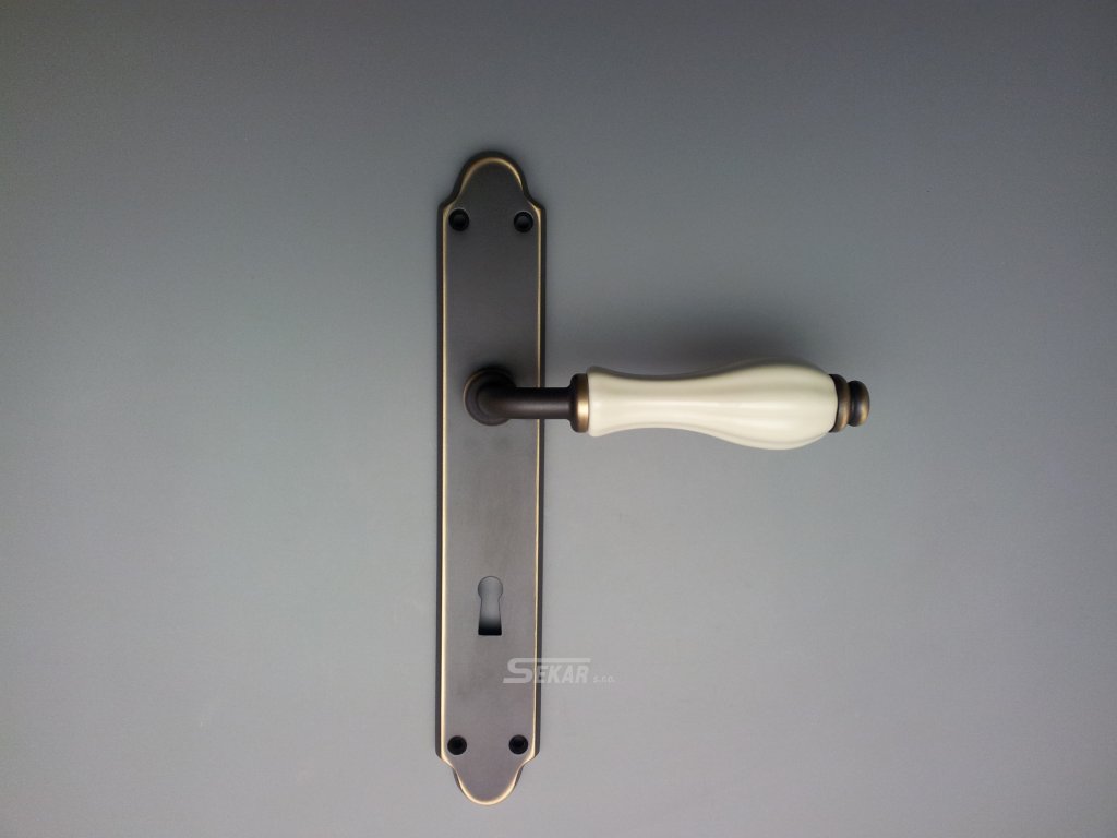 Celomosazná klika s porcelánem v rozetovém provedení se dodává ve více povrchových úpravách a pro...