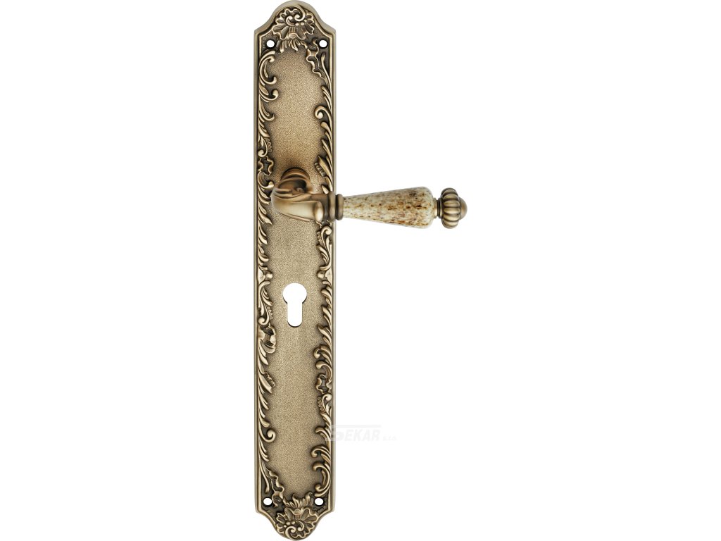 Mosazná stylová klika v galvanických povrchových úpravách. Velikost štítu 52x300mm.
