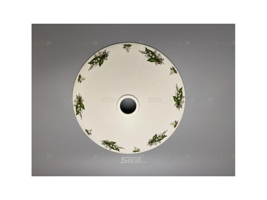 Ručně malované dekory jsou vždy pouze z jedné strany cylindru. Malování na obě strany je možné za příplatek. Svítidlo může být dodáno jak v základní bílé barvě glazury tak i s linkou na okraji, nebo zdobený dekoracemi. Barevnost a zdobení je potřeba zvolit v parametrech výrobku. Po zvolení parametrů bude vypočtena cena.