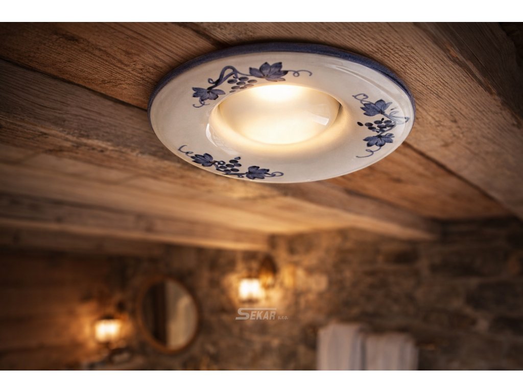 Svítidlo může být dodáno jak v základní bílé barvě glazury tak i s linkou na okraji, nebo zdobený dekoracemi. Barevnost a zdobení je potřeba zvolit v parametrech výrobku. Po zvolení parametrů bude možné vložit výrobek do košíku.Doplňkové parametry