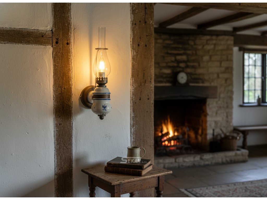 Nástěnné svítidlo ve tvaru petrolejky pro žárovku E14 max 60W.