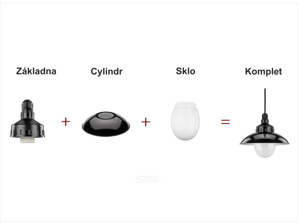 Světlo M sklo + závěs bakelit + cylindr sestava