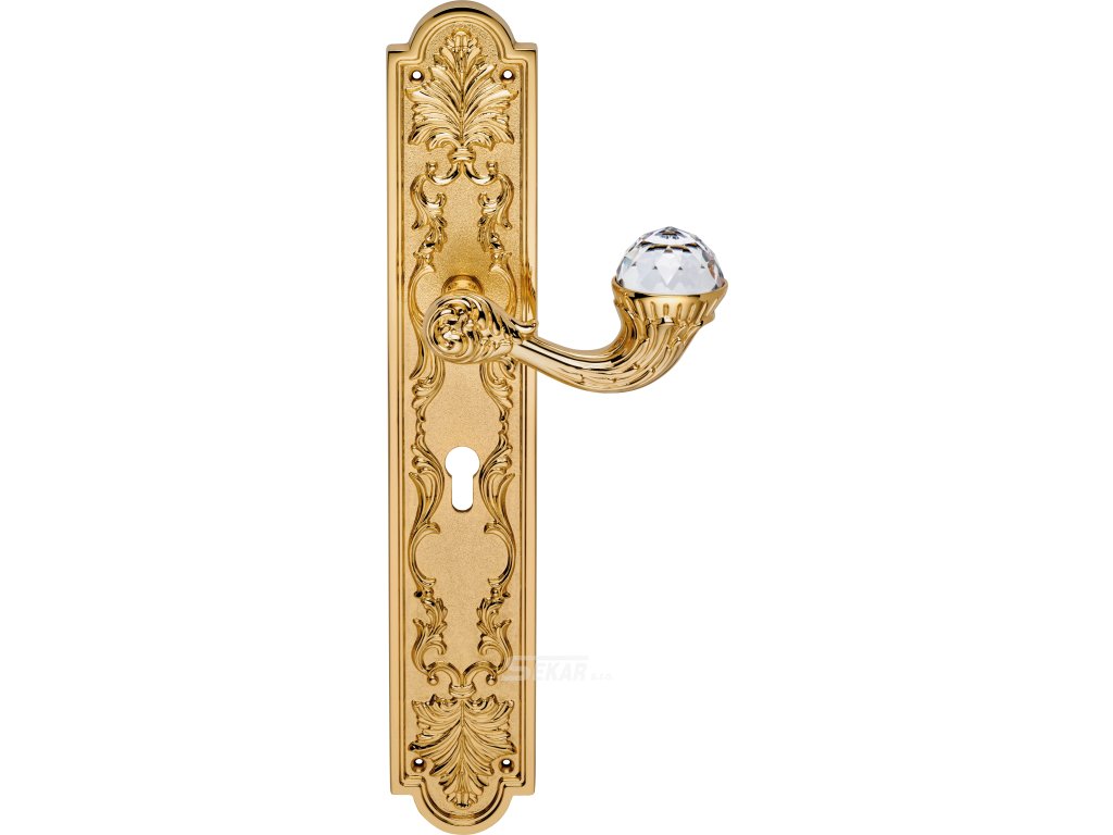 Mosazná klika s velkým broušeným krystalem Swarovski.