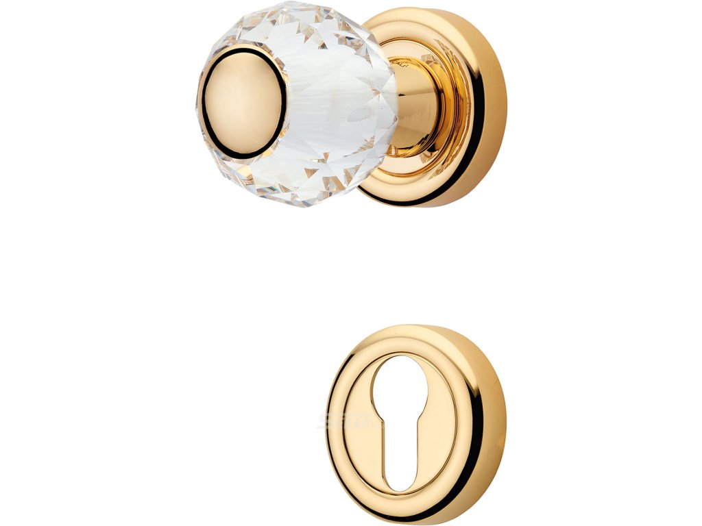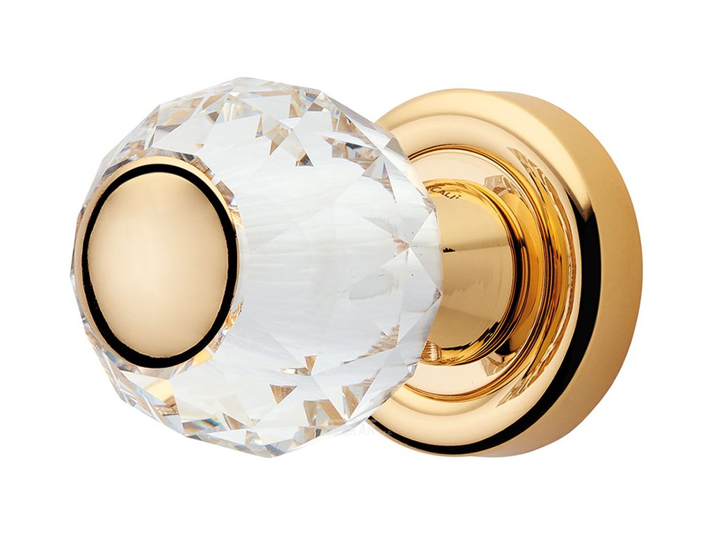 Mosazná stylová klika ve tvaru koule s křišťálem Swarovski v průměru 50mm a v povrchových úpravách mosazi, chromu, nebo zlacená. Variantu povrchové úpravy a zámku si zvolte v parametrech výrobku.