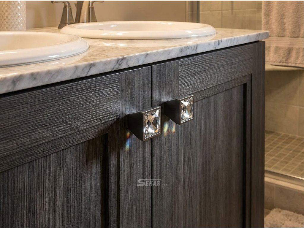 Úchytky Pop-art jsou nepravidelně broušeny v různých úhlech a vytváří zajímavé odlesky světla. Je možné dodat tyto úchytky také s modrým křišťálem. Rozmšr je 30x30mm.