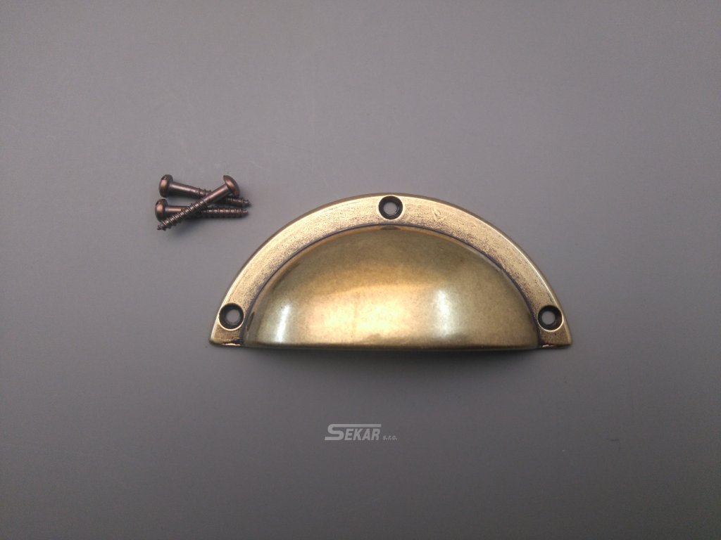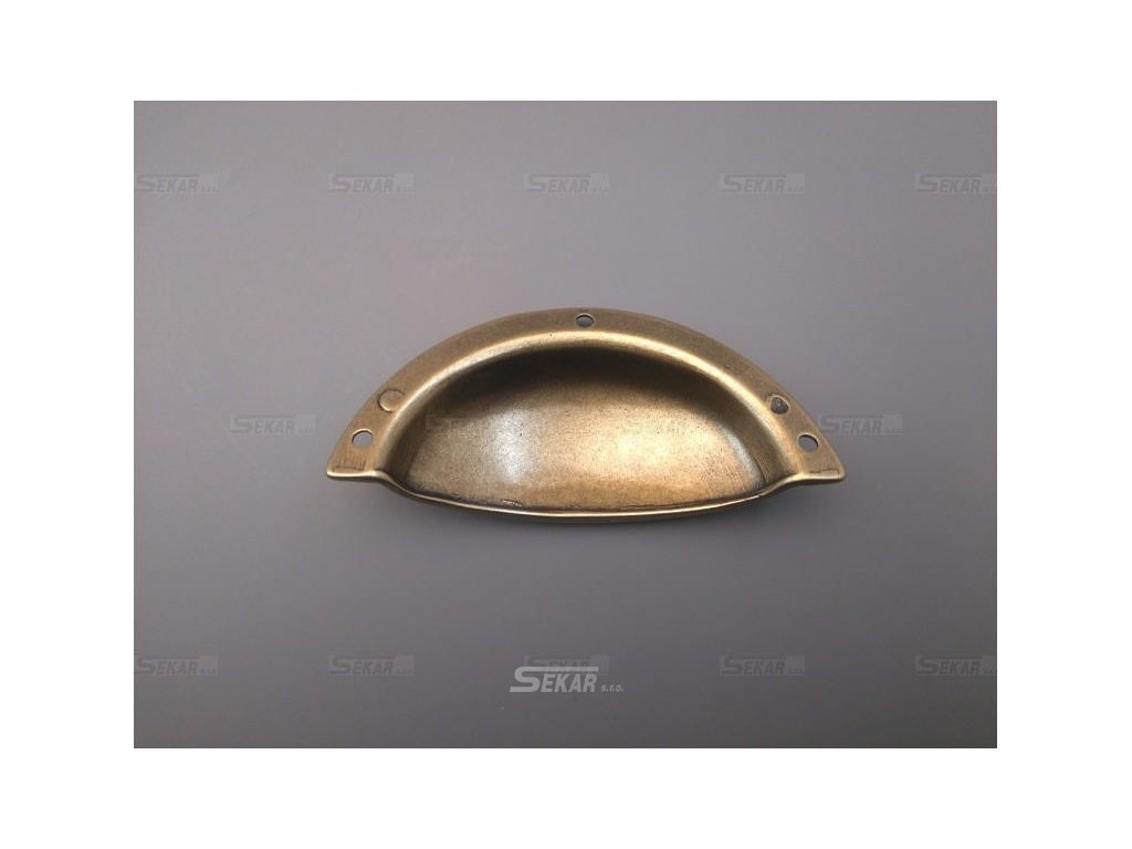 nábytková úchytka kapsa s otvory pro vrchní montáž třemi vruty. Úchytka patina mosaz.