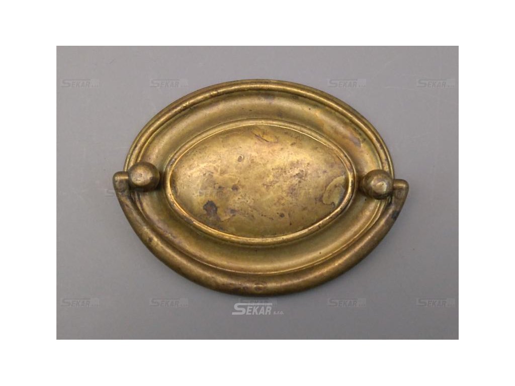 Nábytková úchytka z mosazného plechu s povrchovou úpravou antik.