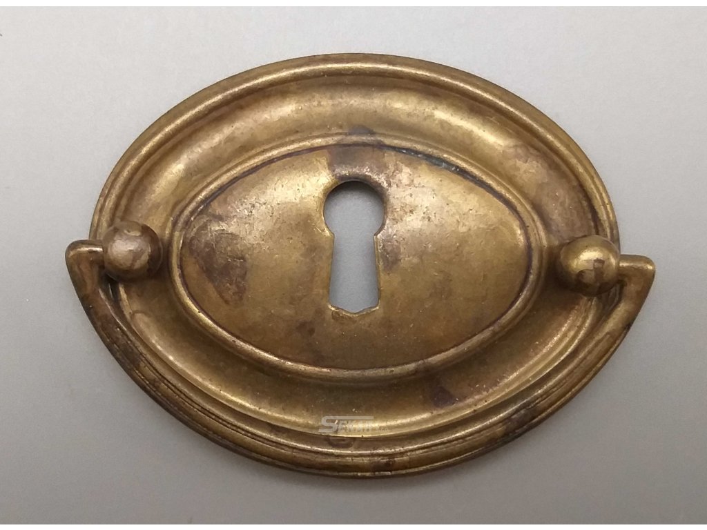 Nábytková úchytka z mosazného plechu s povrchovou úpravou antik.