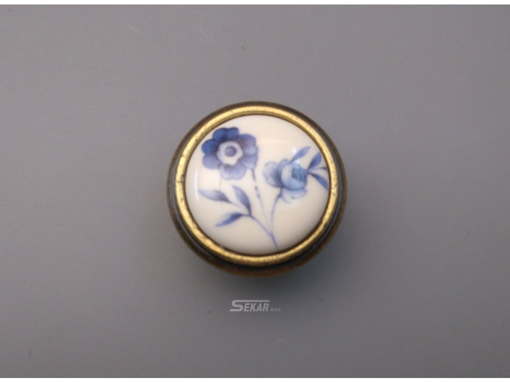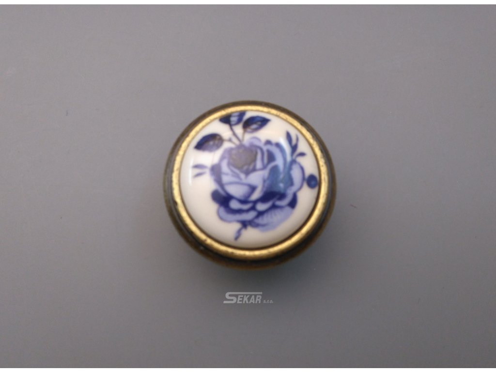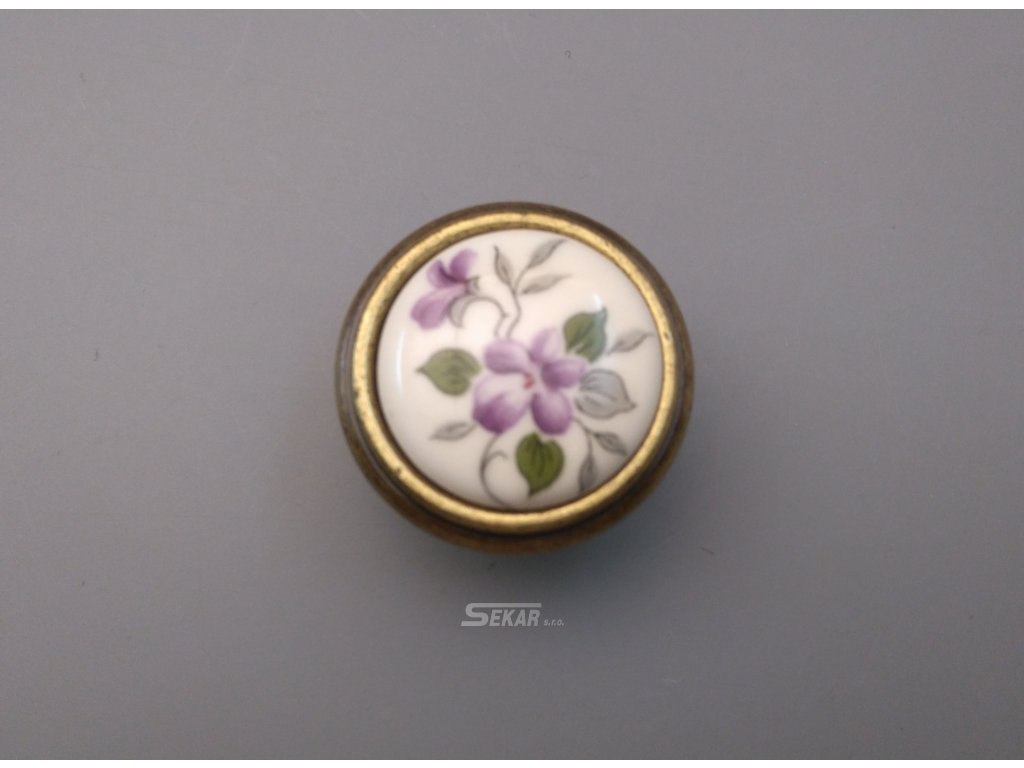 Dekorovaná porcelánová úchytka na kovovém základu.
