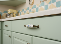 Pomosazená úchytka s porcelánem a dekorací vyráběná na zakázku.