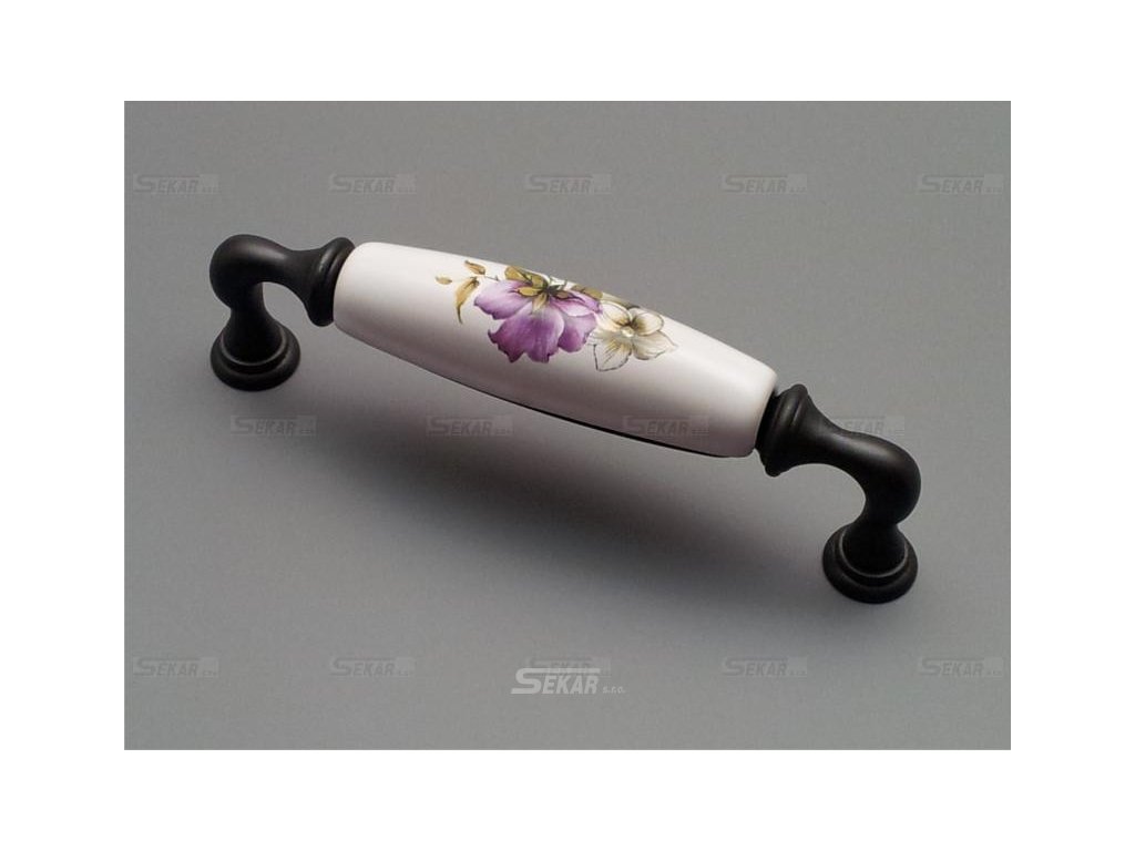 Pomosazená úchytka s porcelánem a dekorací vyráběná na zakázku.