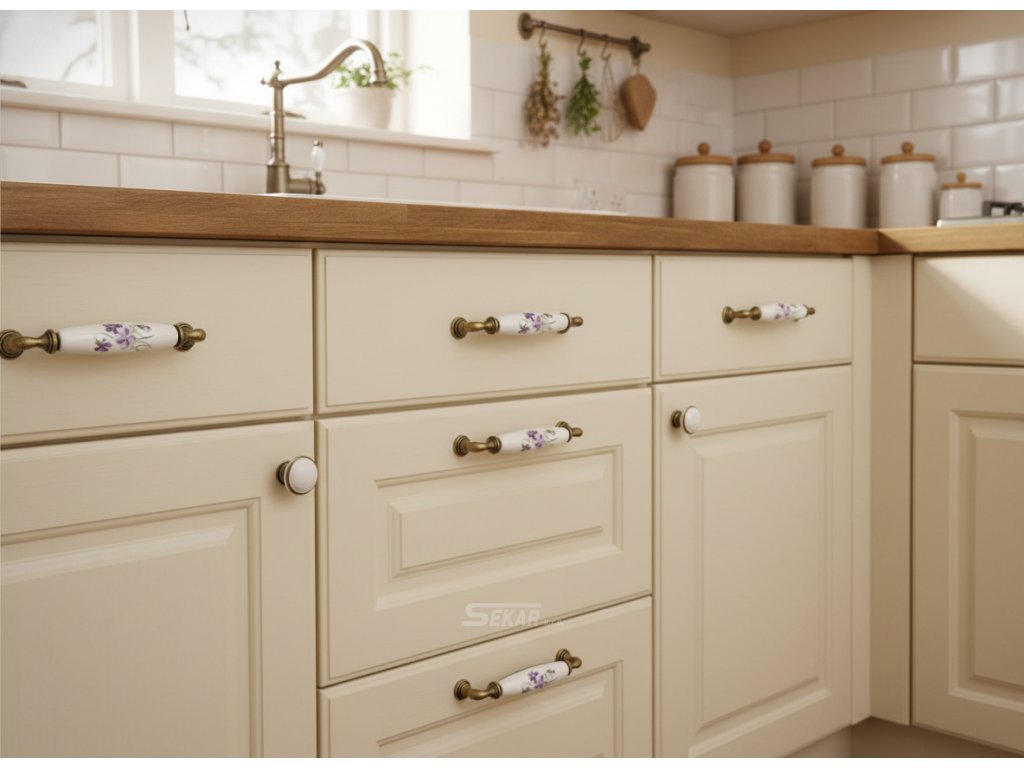 Dekorace porcelánu použitá na úchytce může být i na klikách, vypínačích, svítidlech, umyvadlech a obkladech.Doplňkové parametry