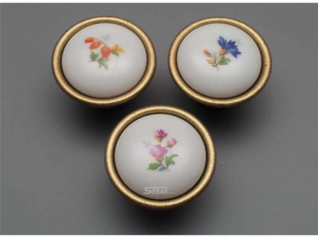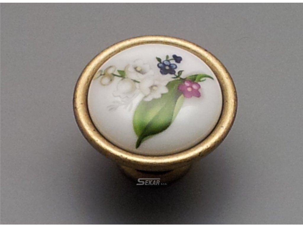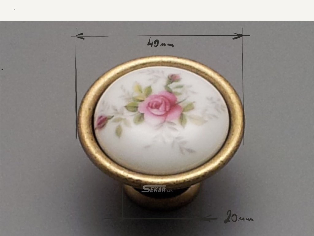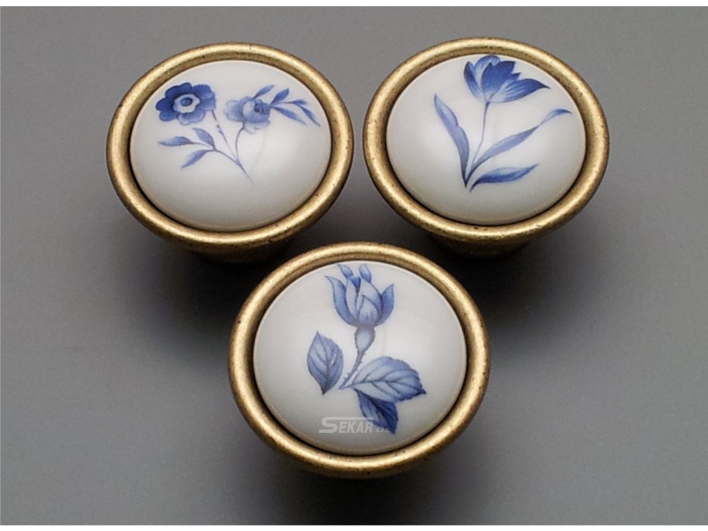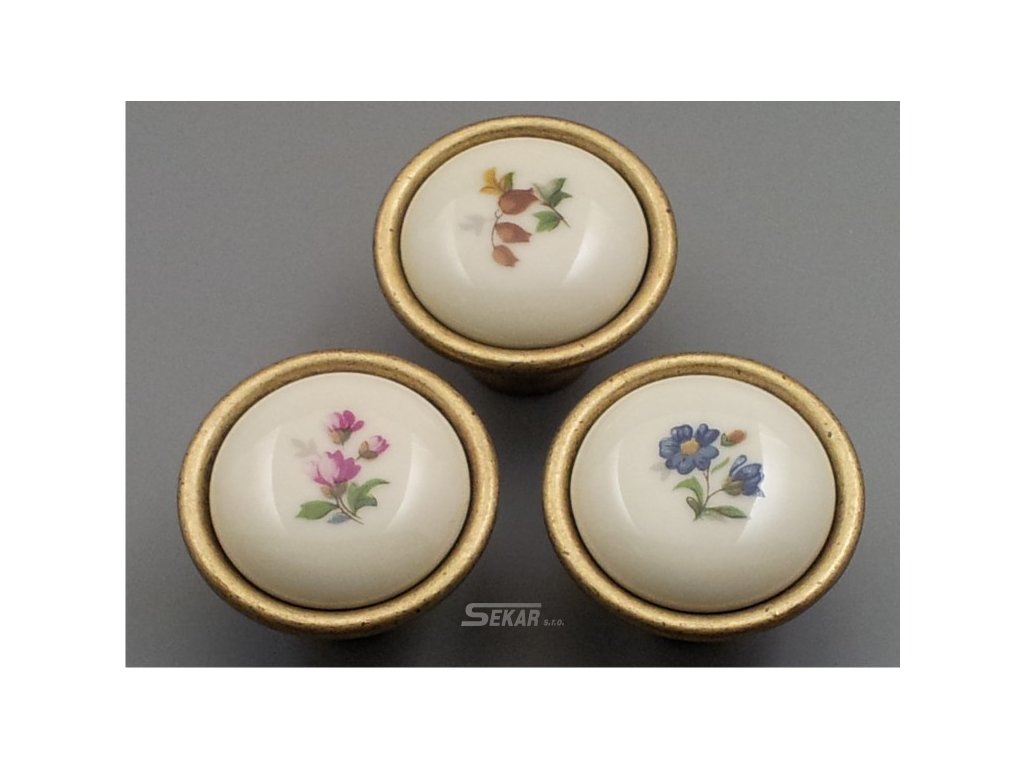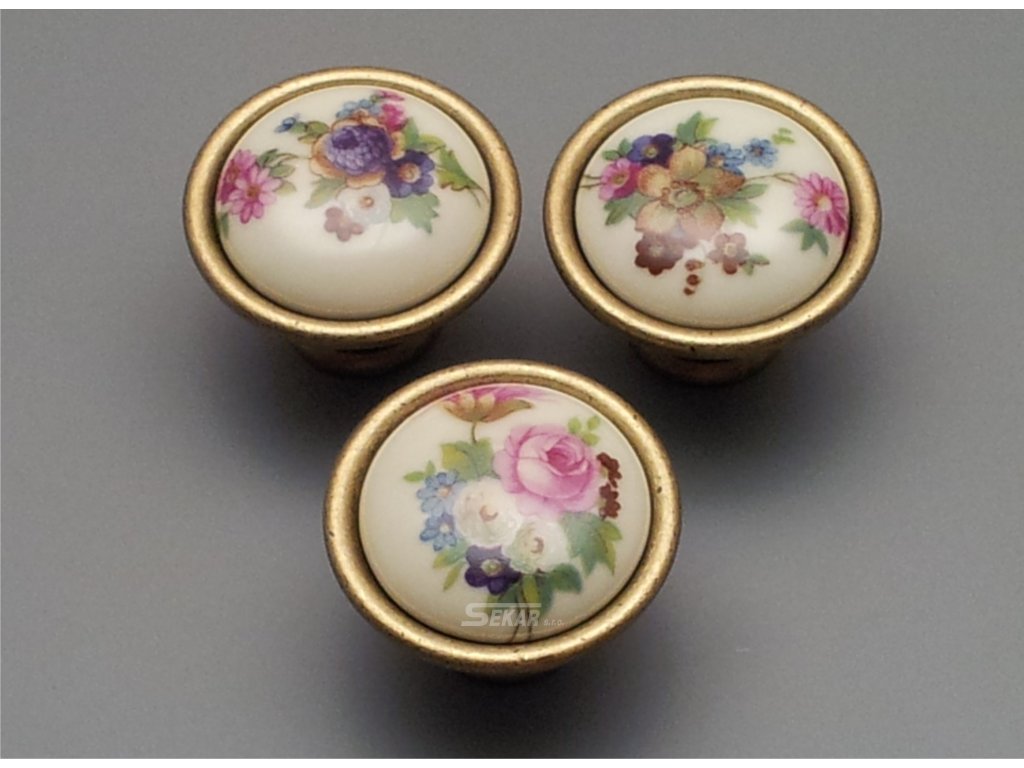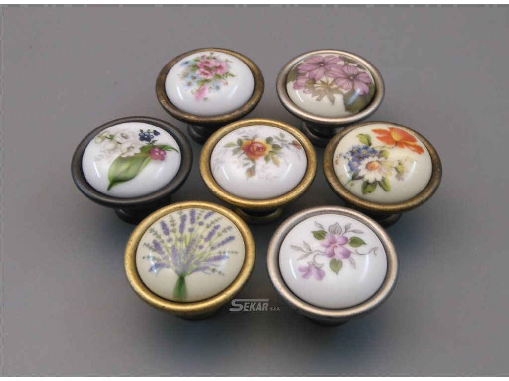 Barvu kovu, porcelánu a dekoraci si zvolte v parametrech výrobku níže, čímž se vypočte cena a úchytka půjde objednat.Doplňkové parametry