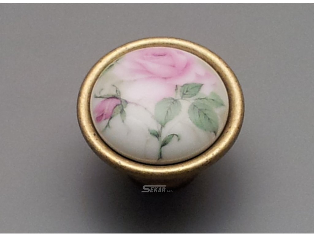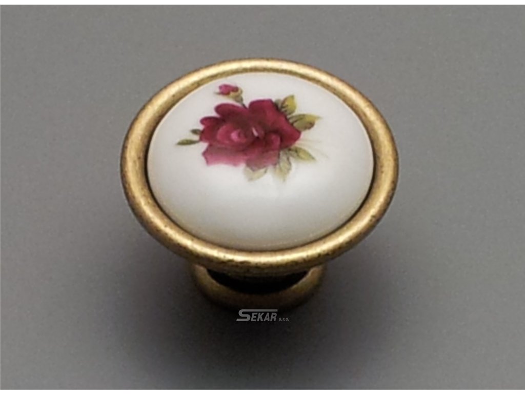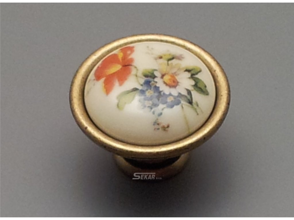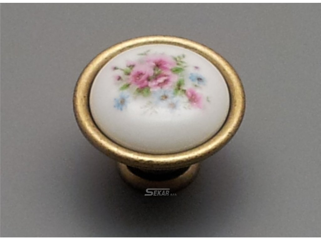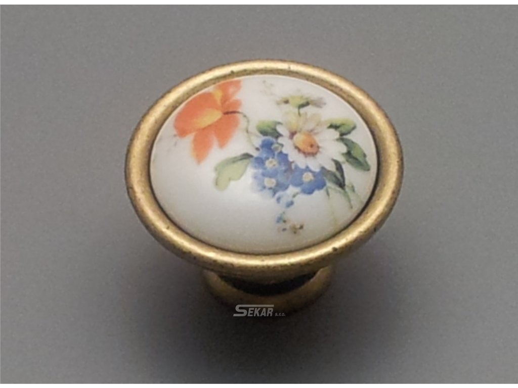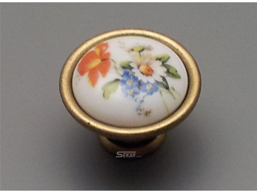Barvu kovu, porcelánu a dekoraci si zvolte v parametrech výrobku níže, čímž se vypočte cena a úchytka půjde objednat.Doplňkové parametry