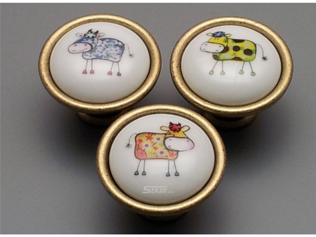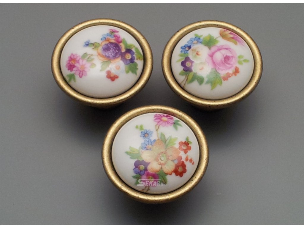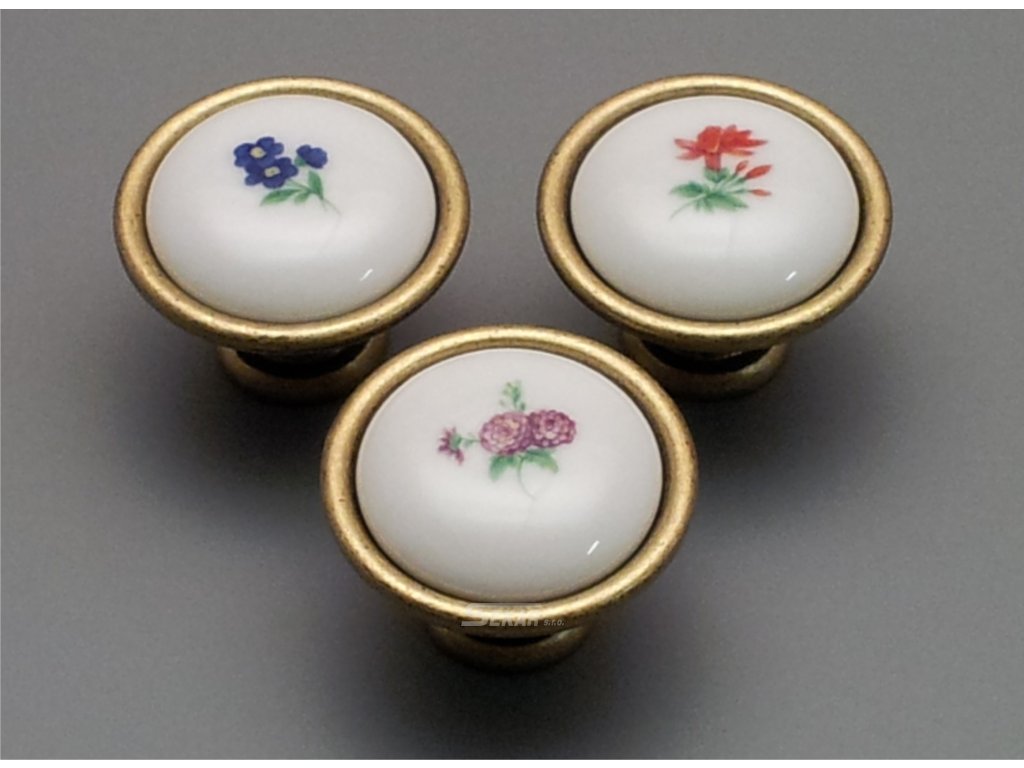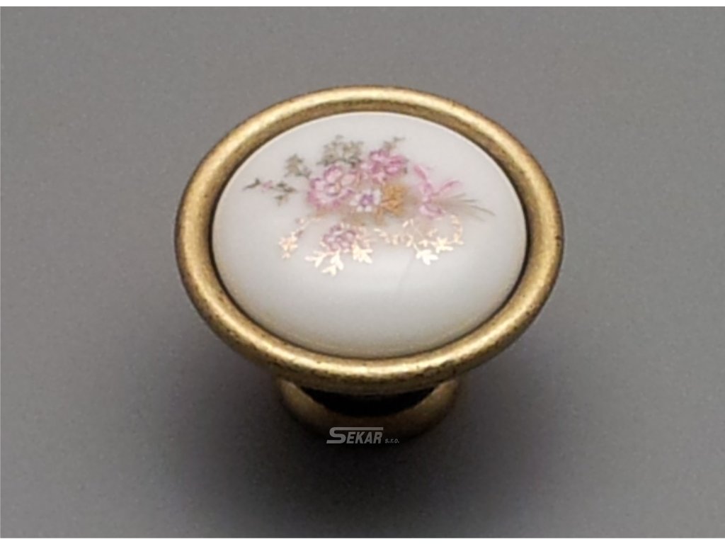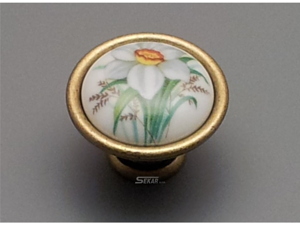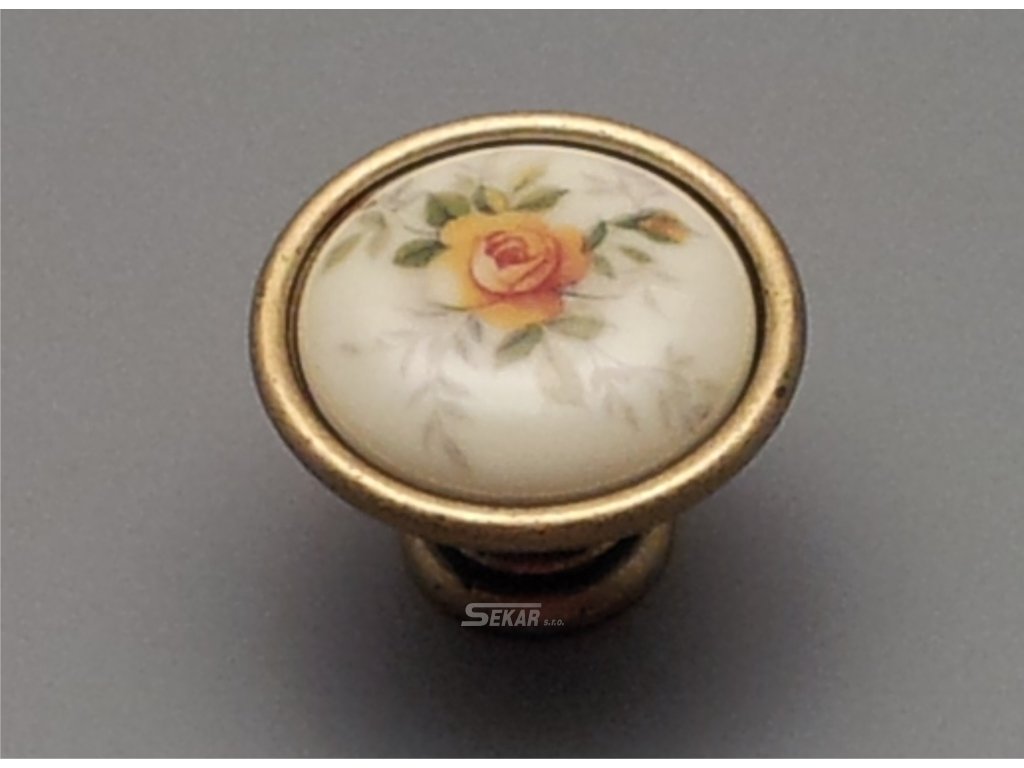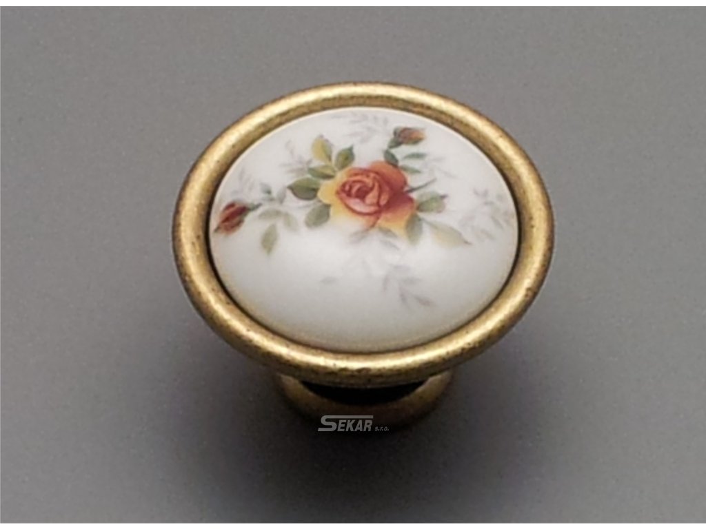 Barvu kovu, porcelánu a dekoraci si zvolte v parametrech výrobku níže, čímž se vypočte cena a úchytka půjde objednat.Doplňkové parametry