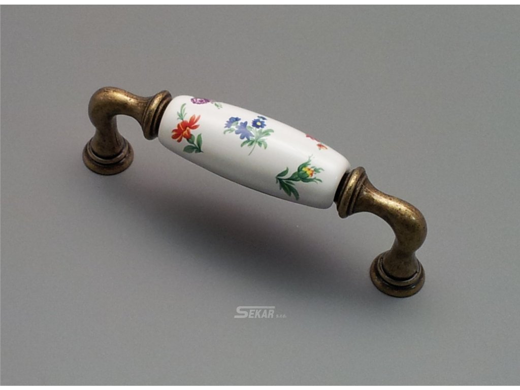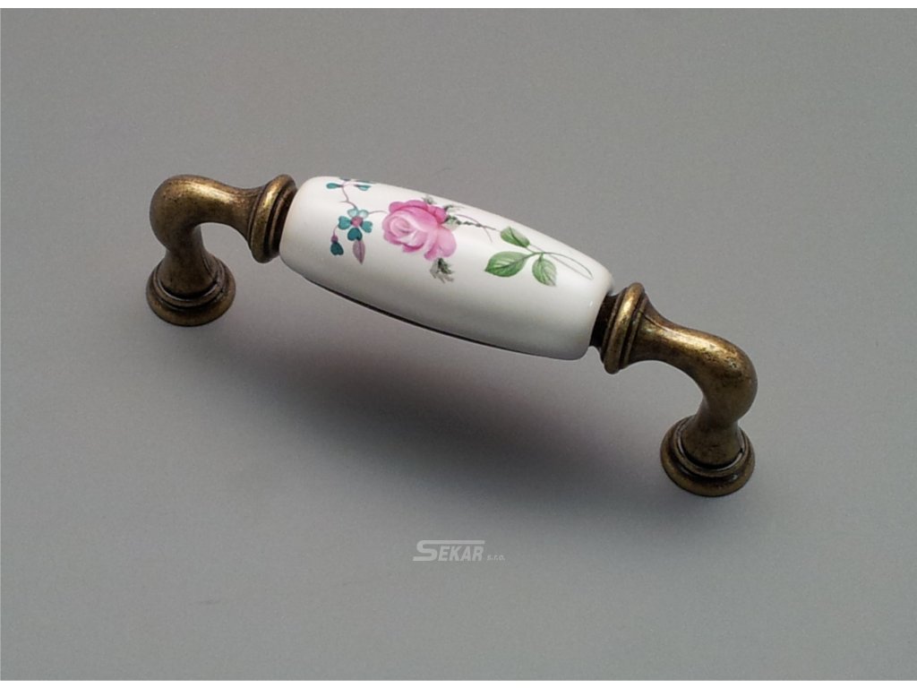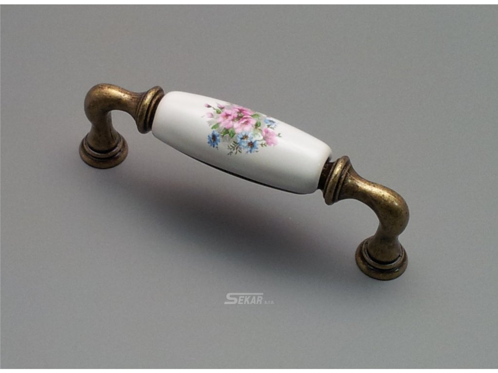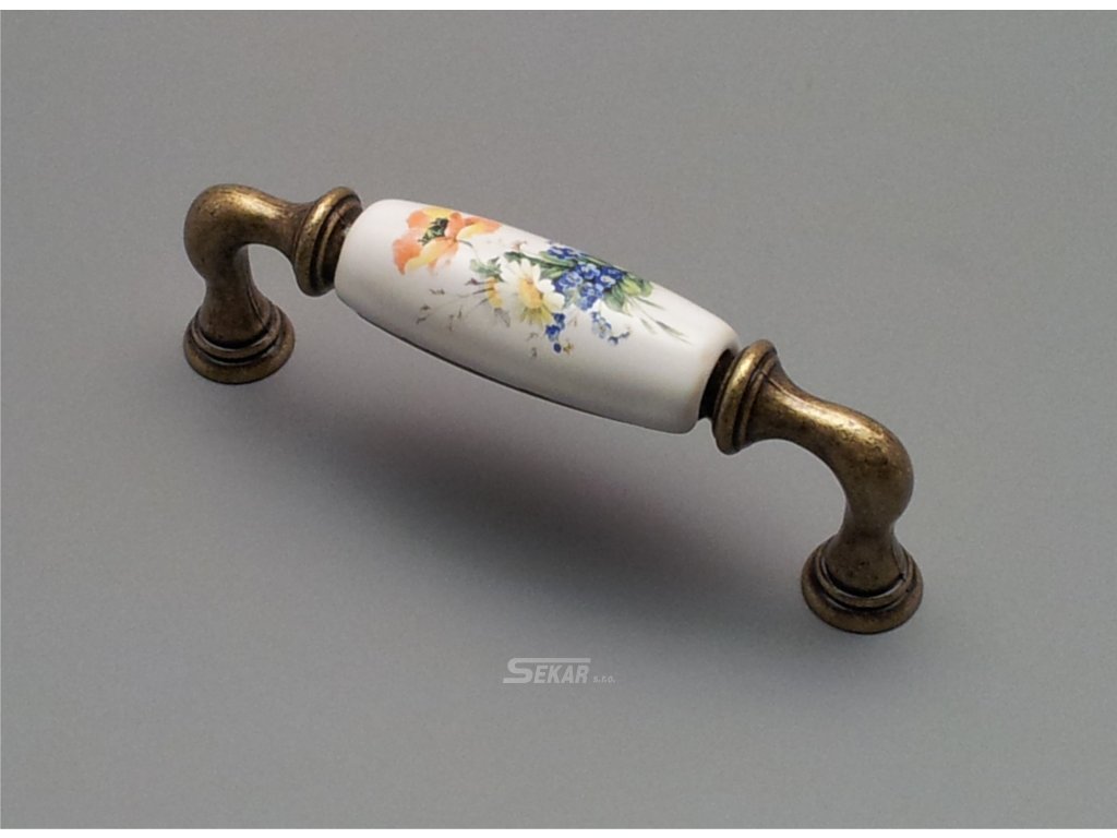 Porcelánová úchytka 96mm s dekorací 15136K09600