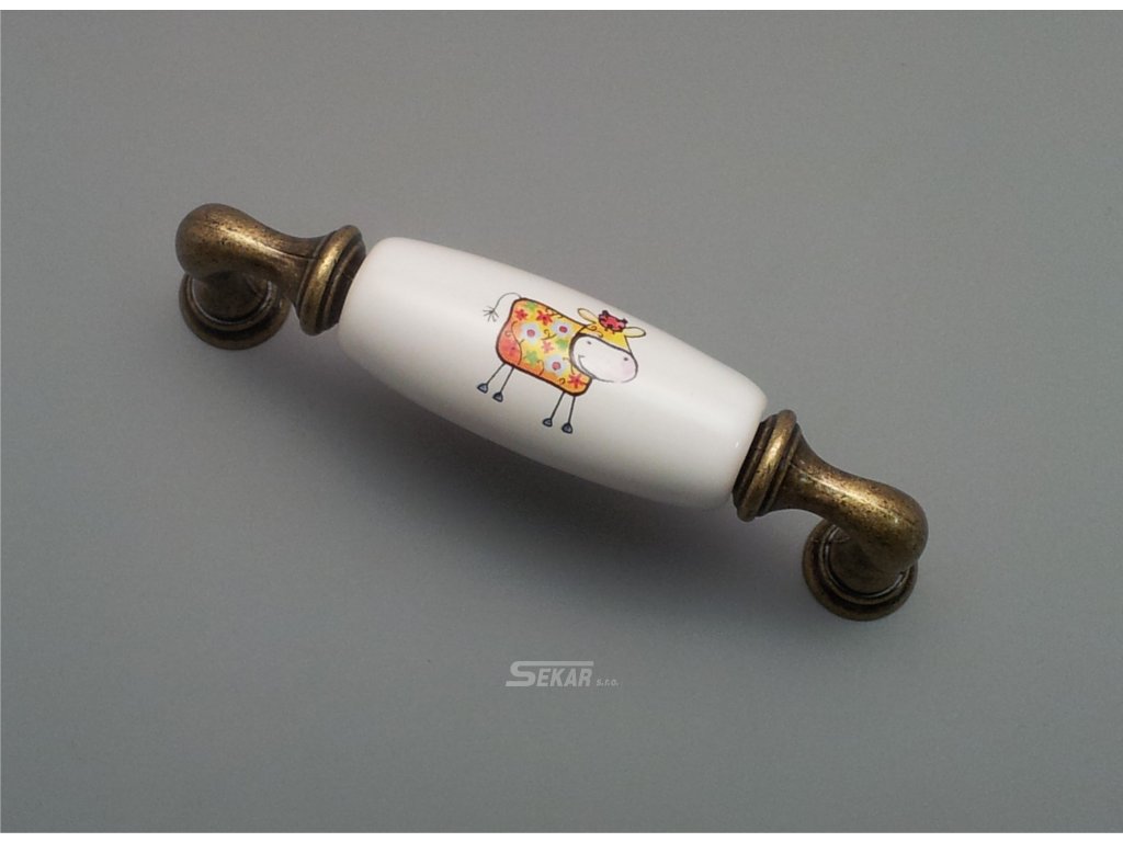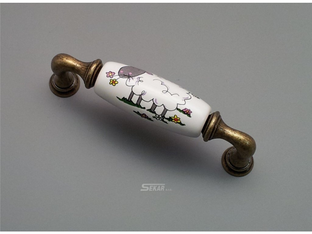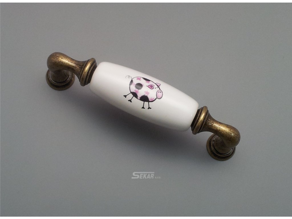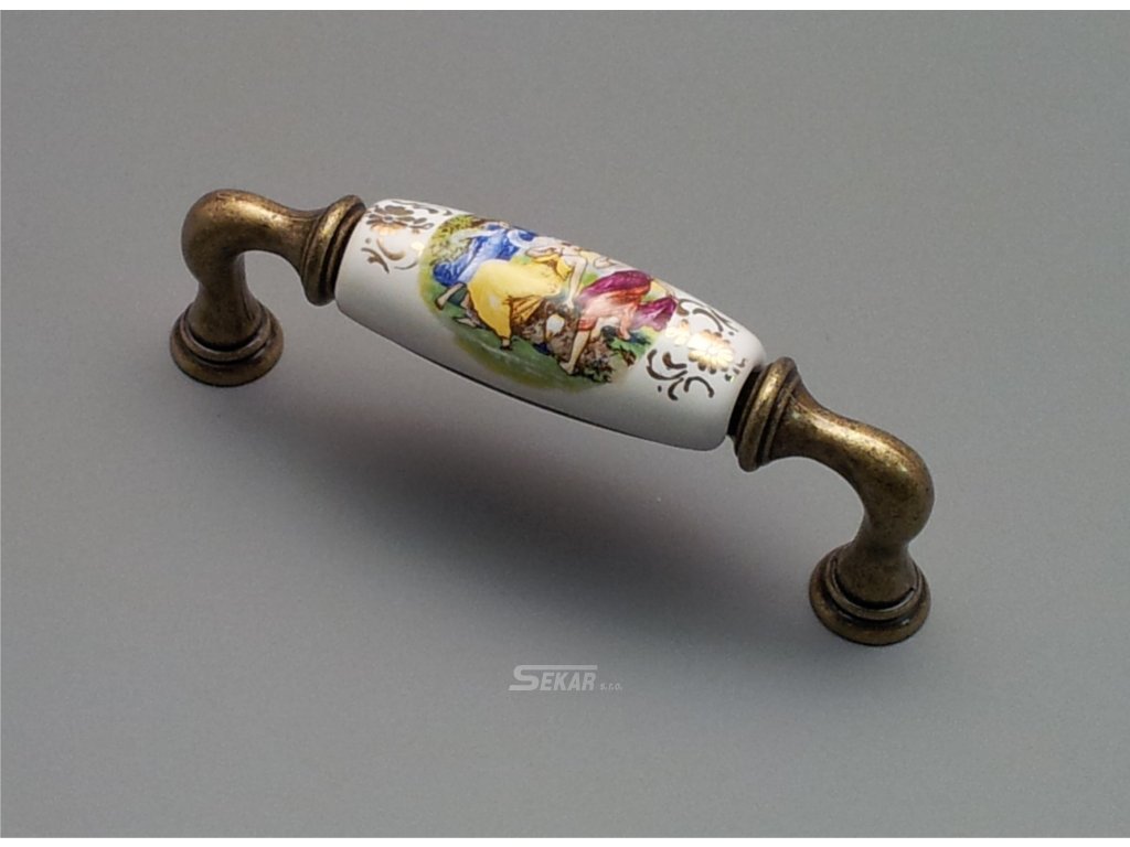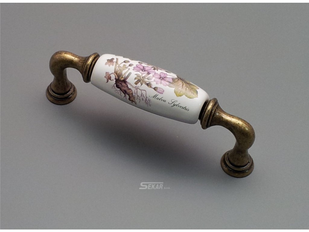 Porcelánová úchytka 96mm s dekorací 15136K09600