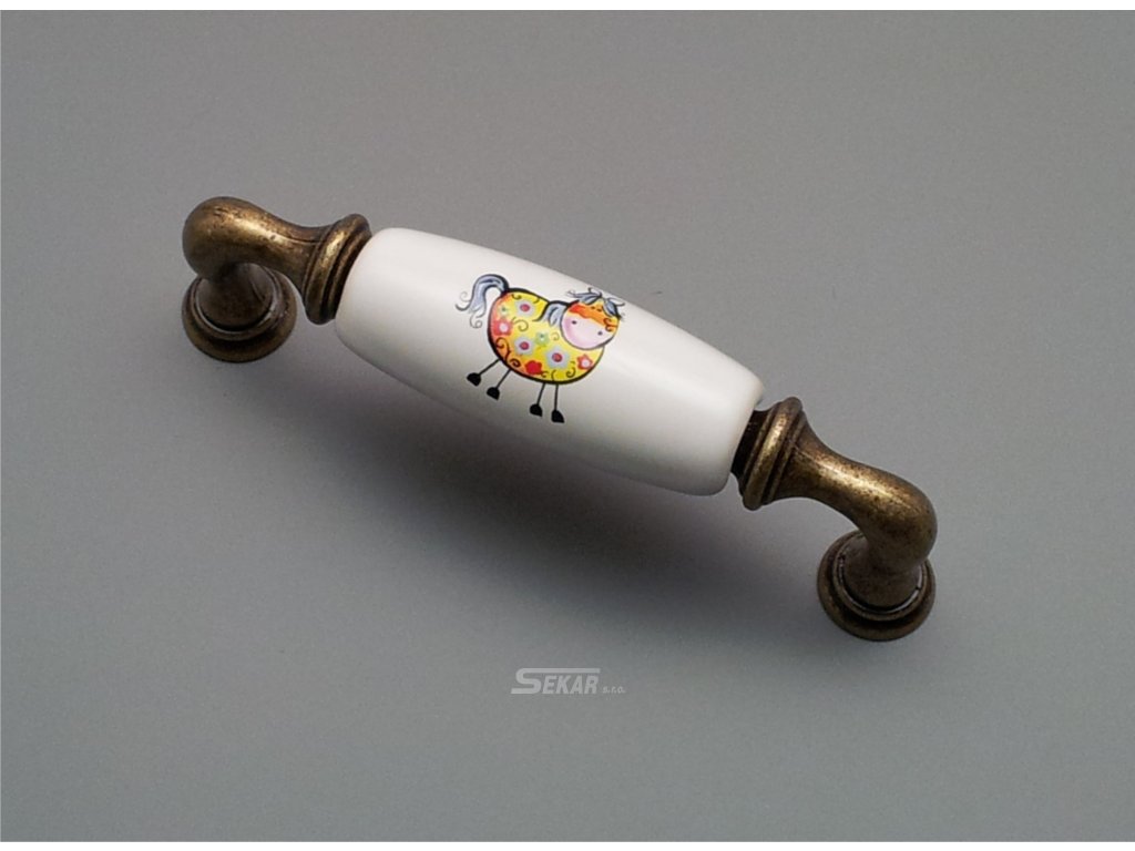 Kovová úchytka s porcelánem a dekorací vyráběná na zakázku. V této kartě je možné zvolit všechny kombinace kovů, barvy porcelánu a dekoraci. Vše je nutné zvolit v parametrech výrobku a potvrdit, poté je možné vložit do košíku.