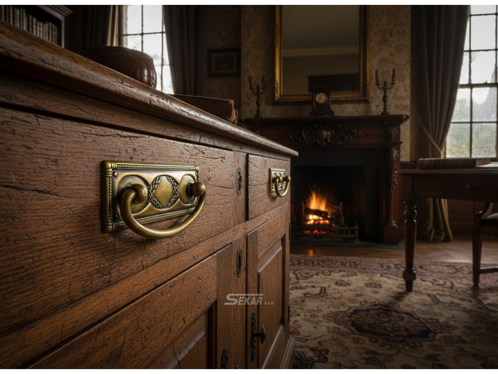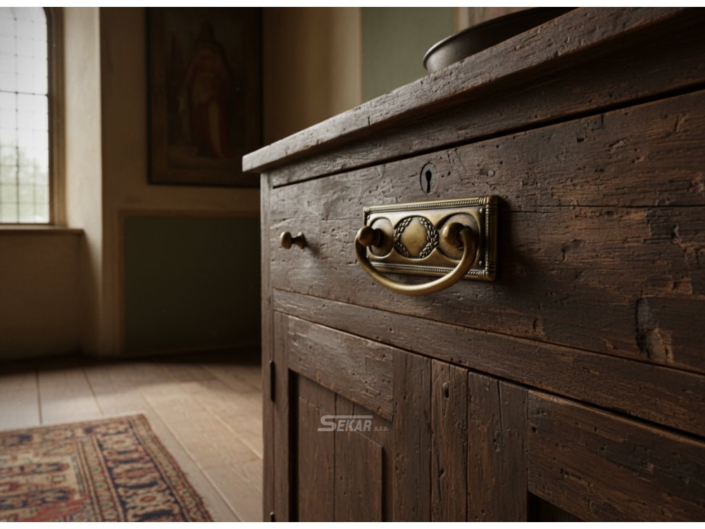 Rustikální nábytková úchytka, kování pro nábytek, úchytka je vyrobena ze slitiny kovů a má galvanickou povrchovou úpravu