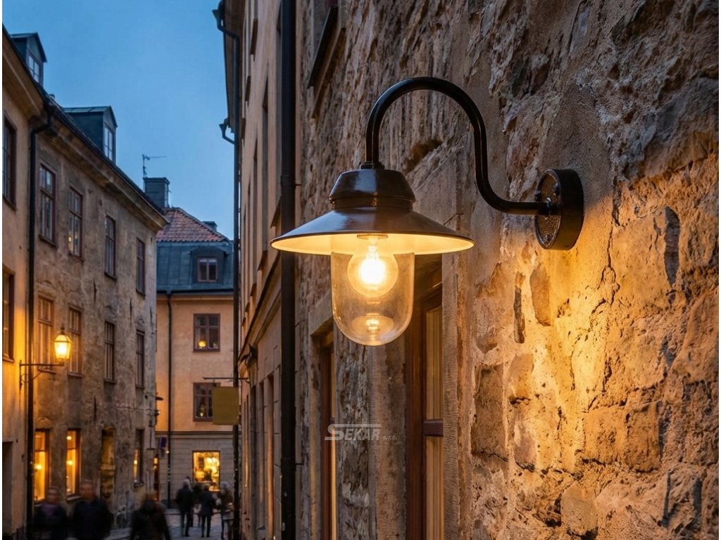 Venkovní svítidlo na stěnu s krytím IP54 , pro žárovku do 100W.