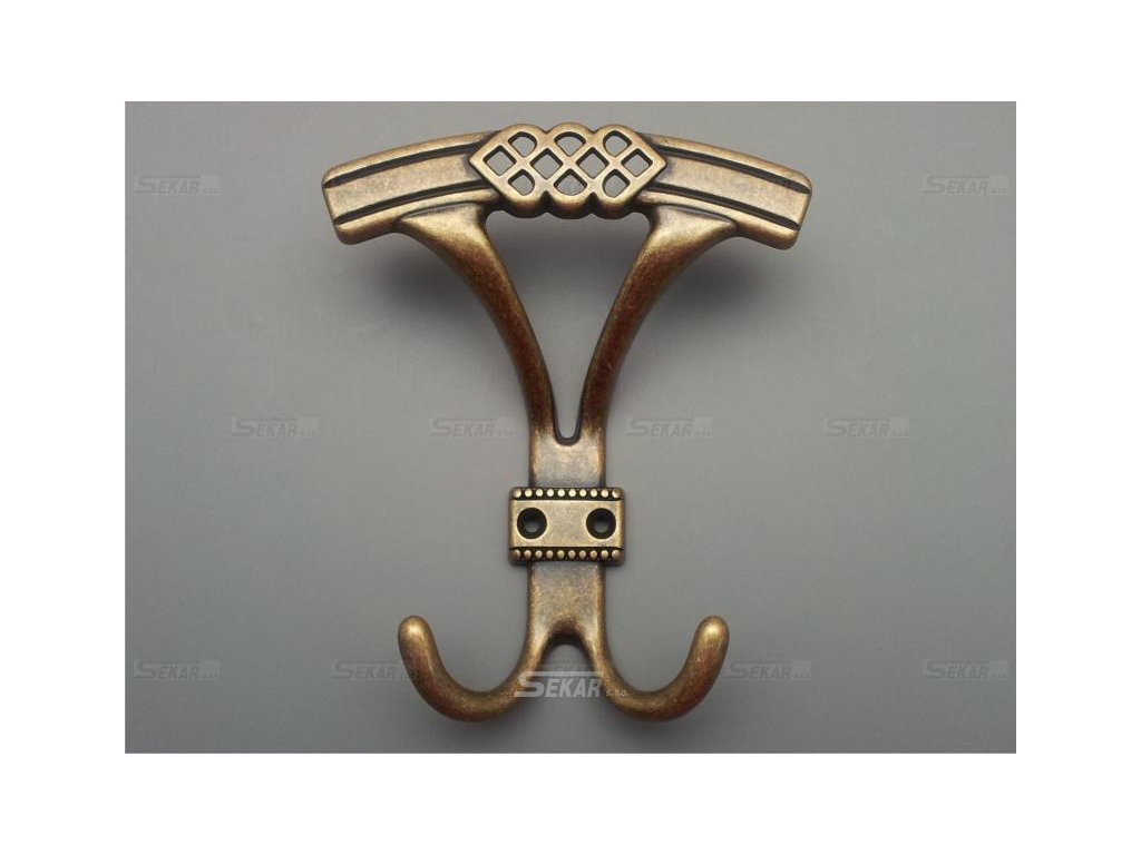Nábytkový věšák ze slitiny kovů s povrchovou úpravou.